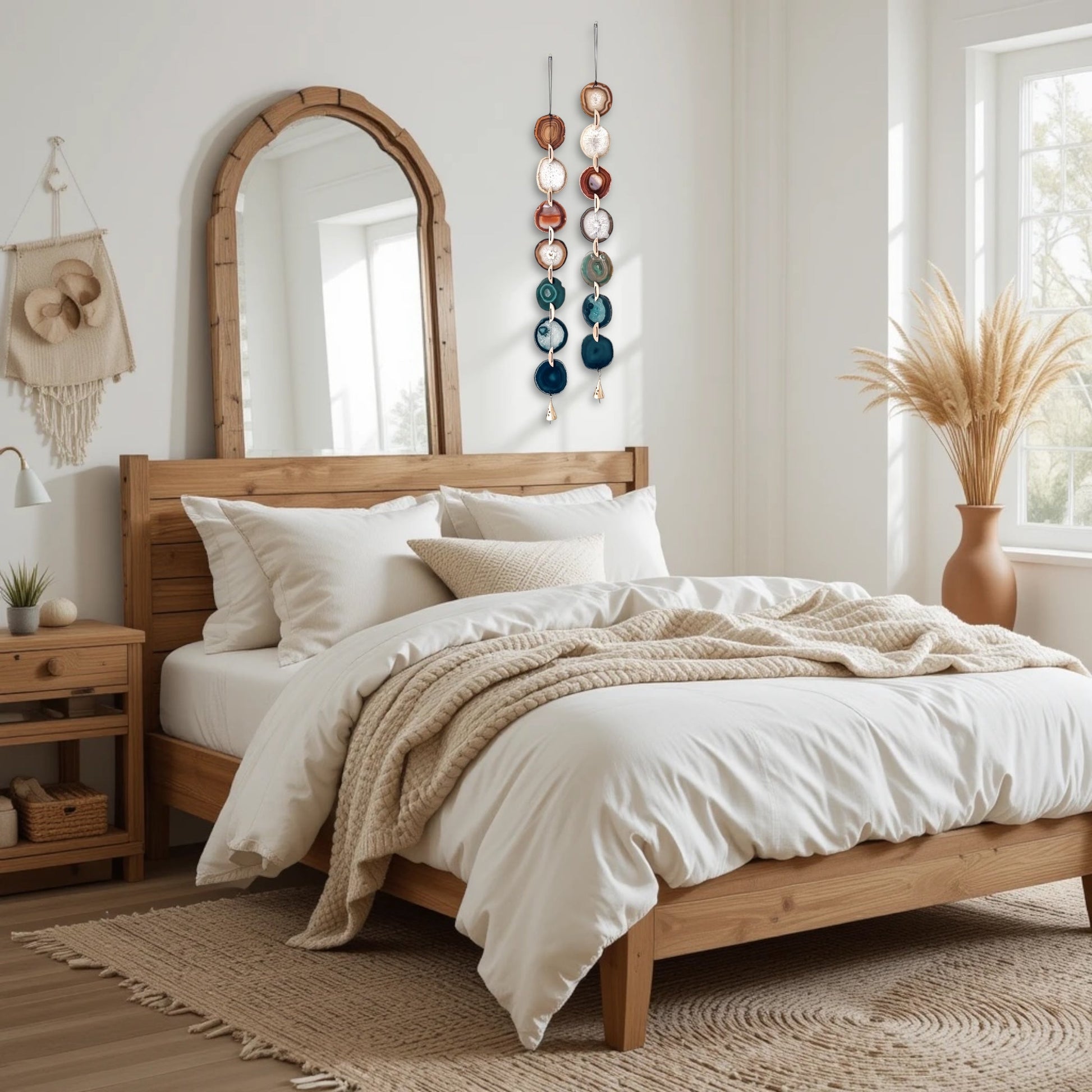 - Neutral palette complements any décor — perfect for layering with art or hanging solo.