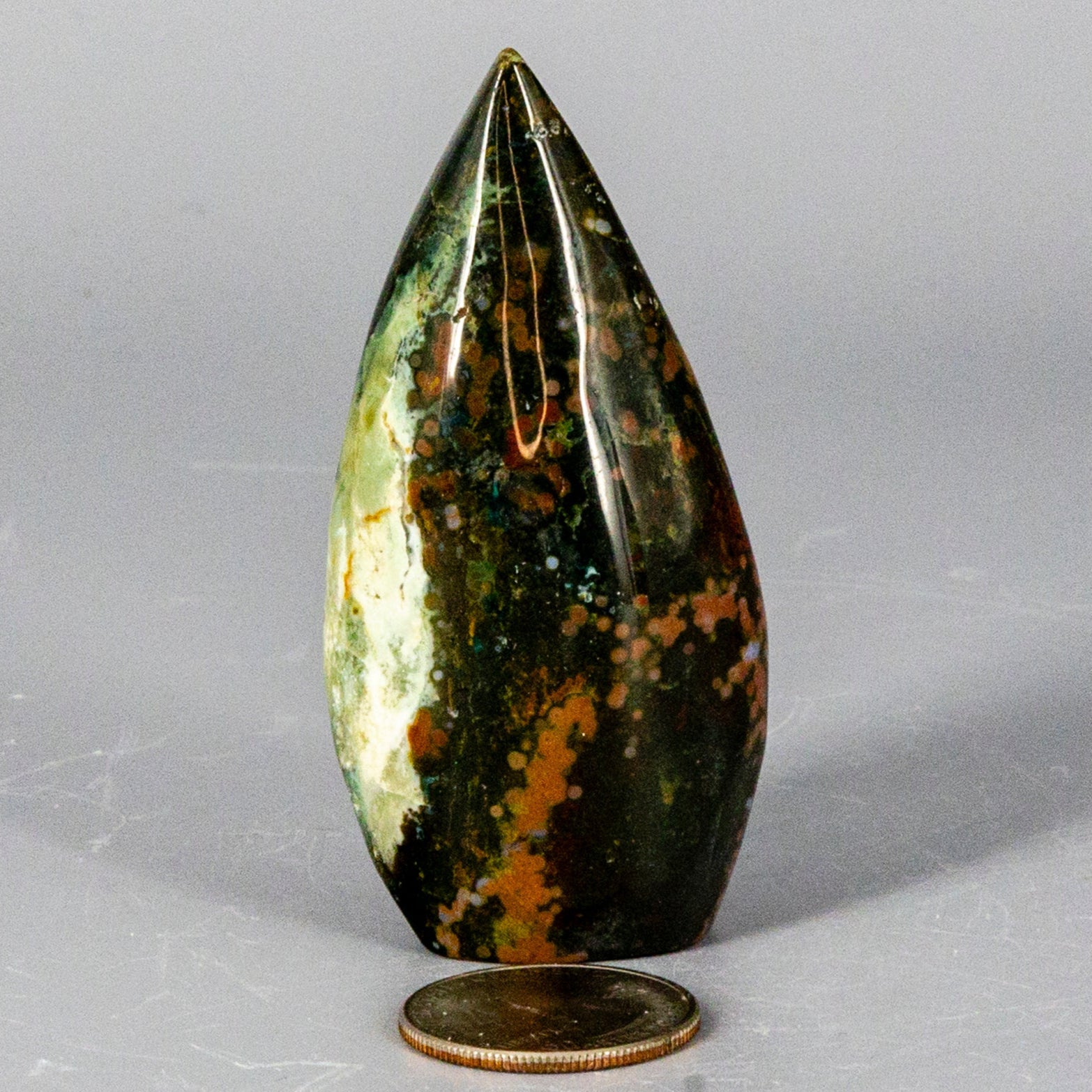 Ocean Jasper Torch Freeform is a stunning natural specimen, known for its vibrant orbs and flowing patterns that evoke the energy of ocean waves. This unique shape enhances the stone’s inherent beauty, making it ideal for display or collection. Beyond its aesthetic appeal, Ocean Jasper is revered in metaphysical communities for its powerful healing properties. It promotes harmony, emotional balance, and a deep connection to the rhythms of the earth and sea.