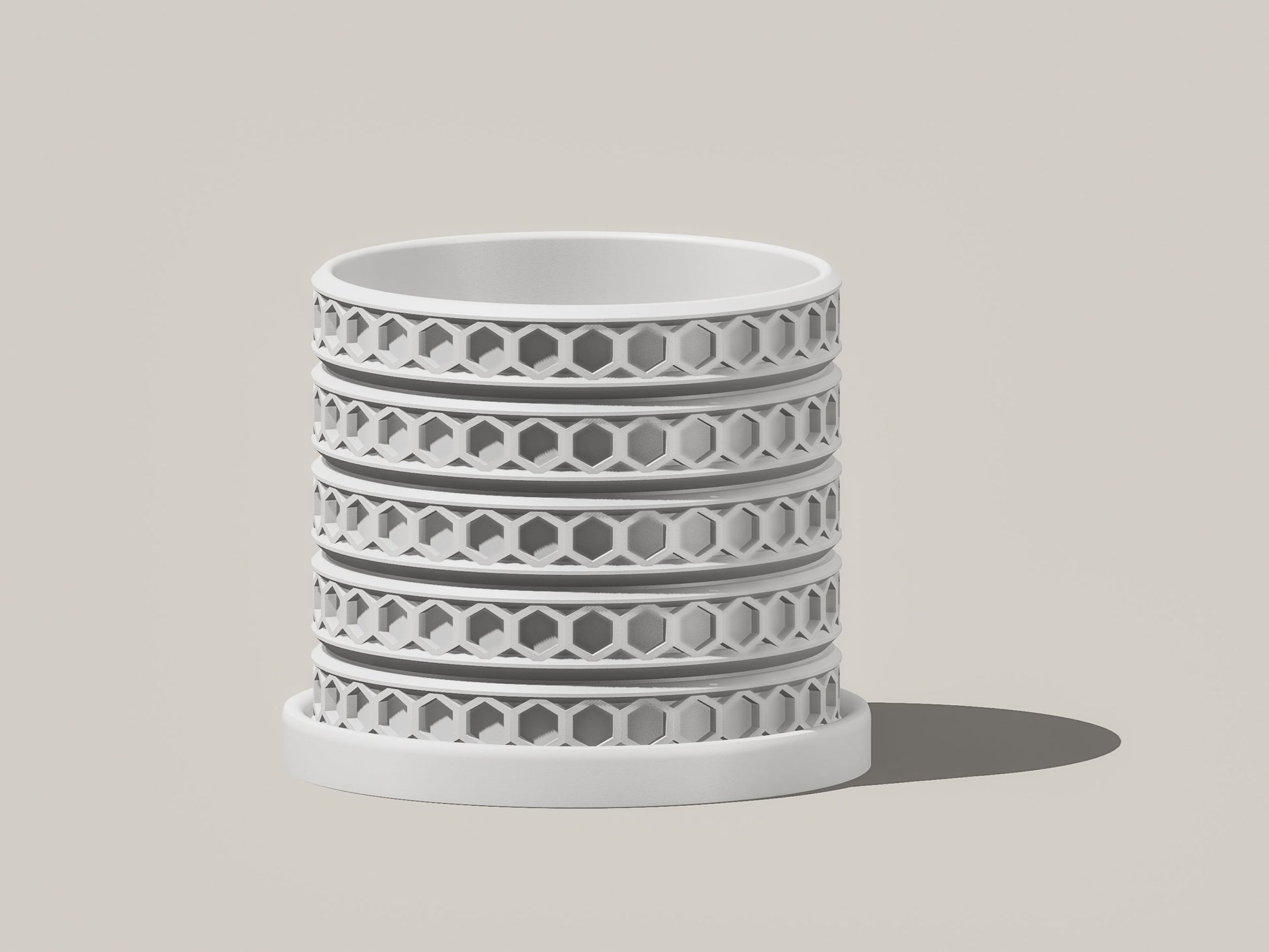 The Orion Plant Pot makes a statement with its unique hexagonal chains wrapped 360 split between clean lines. Orion comes in multiple sizes and colors with the option for drip tray saucer.