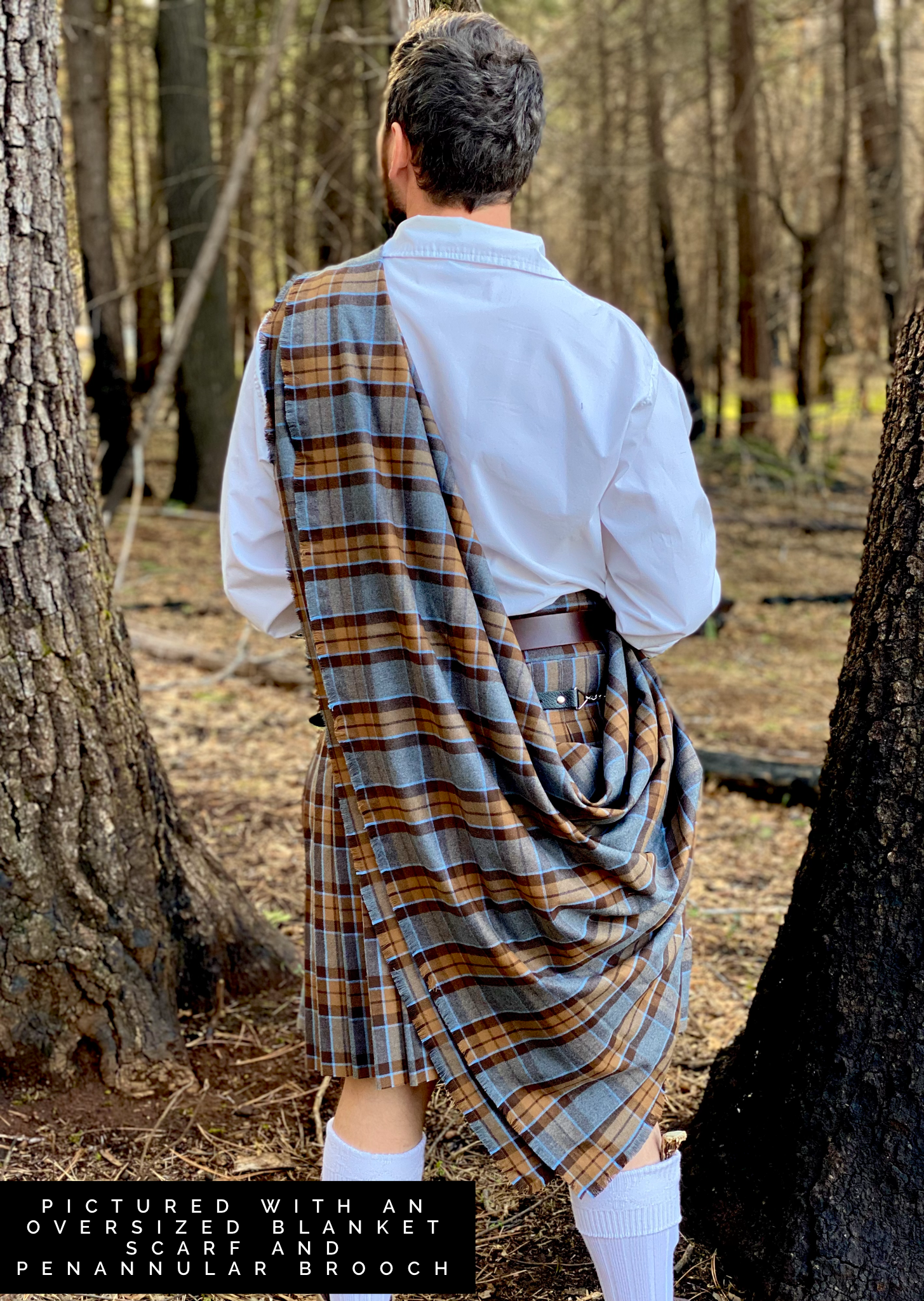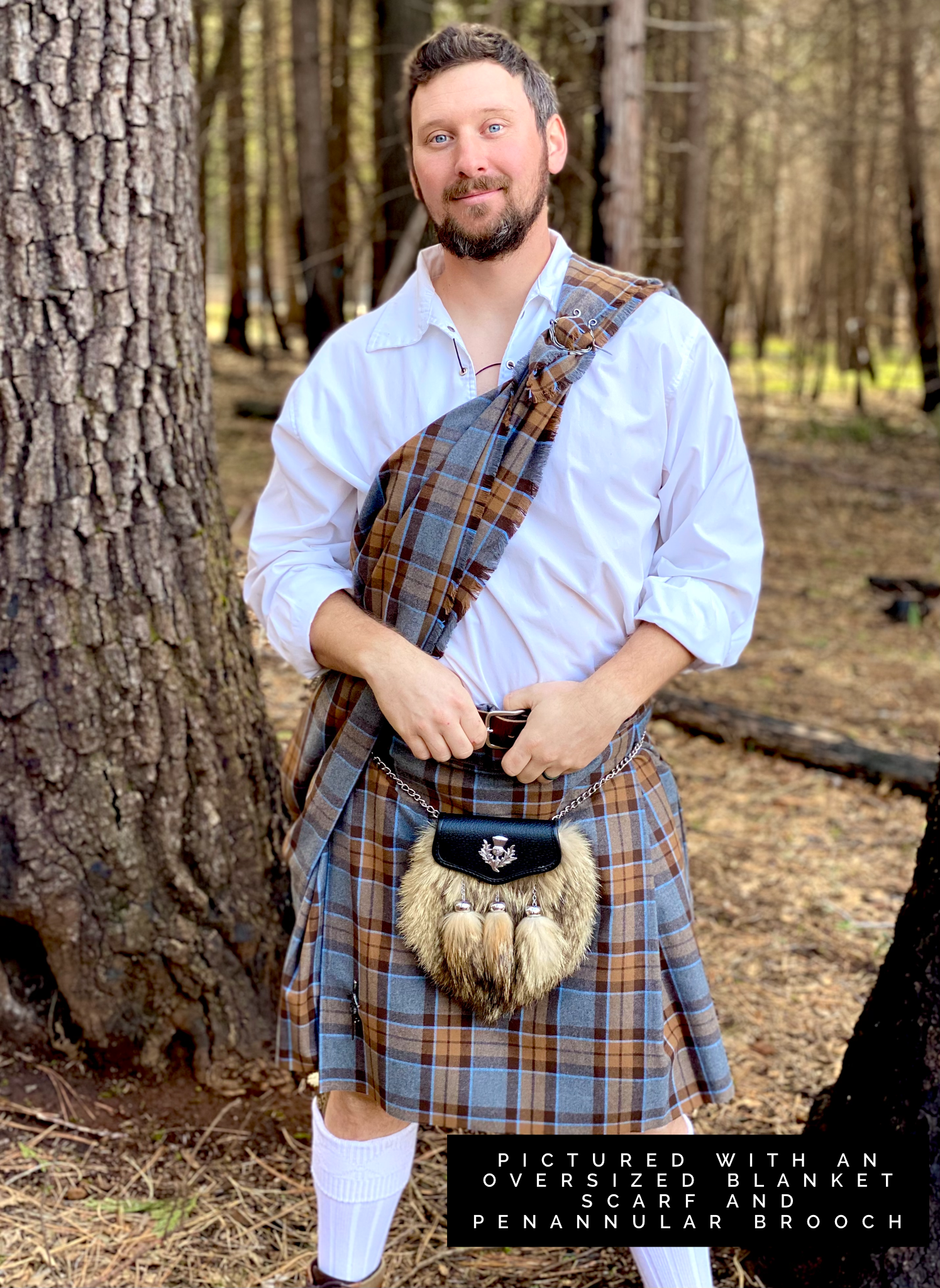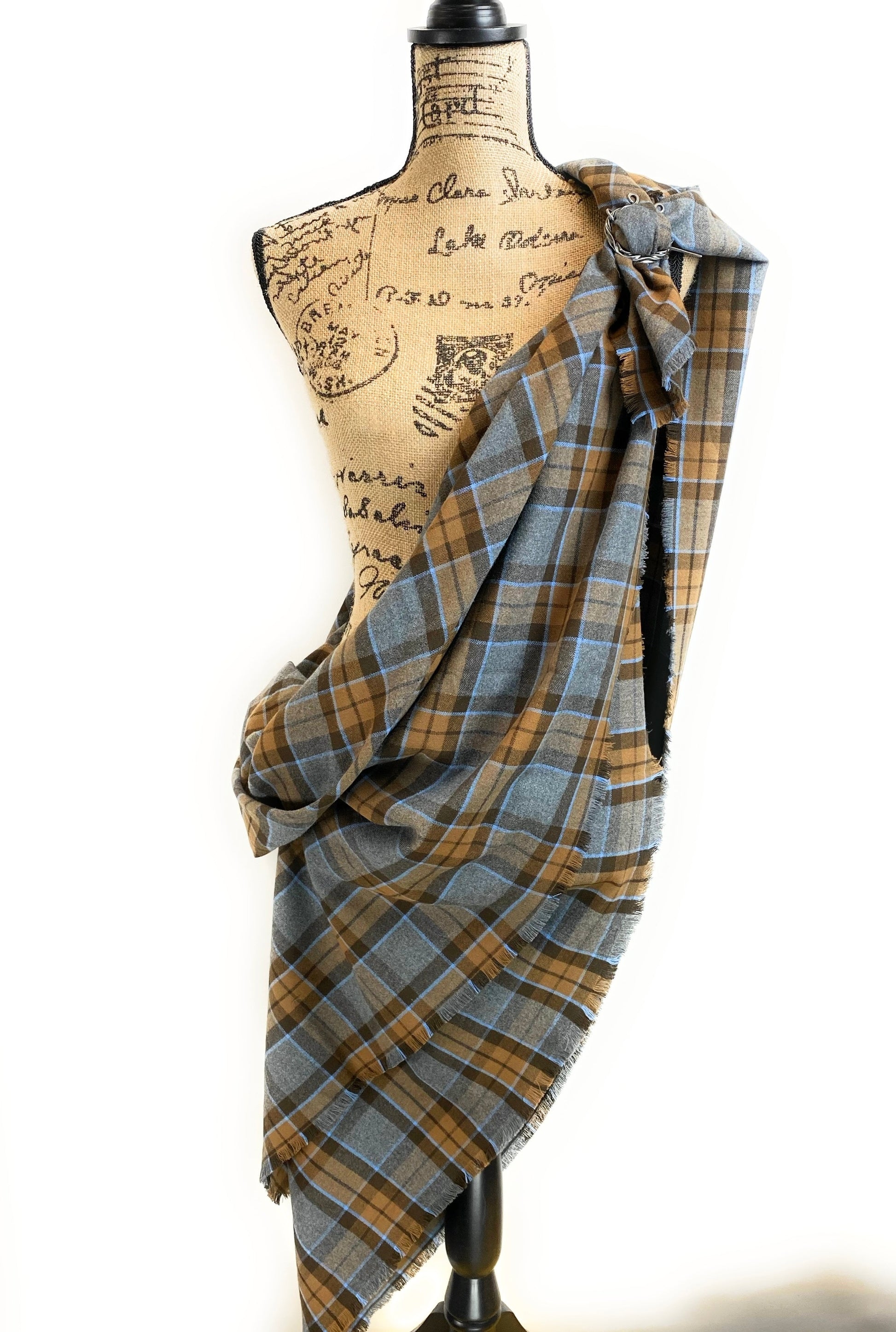 Oversized Blanket Scarf/Earasaid - Outlander Clan MacKenzie Inspired Gray, Brown and Light Blue Cotton Flannel