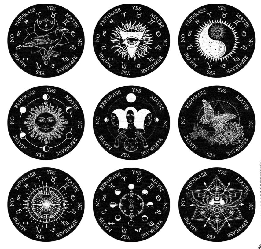 Black and white pendulum boards designed for divination and spiritual guidance. Use with your favorite crystal pendulum to receive clear yes/no answers, enhance intuition, and deepen your spiritual practice.
