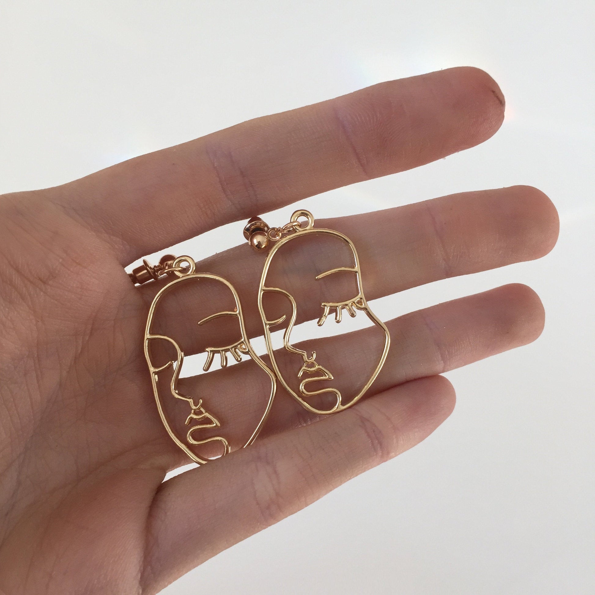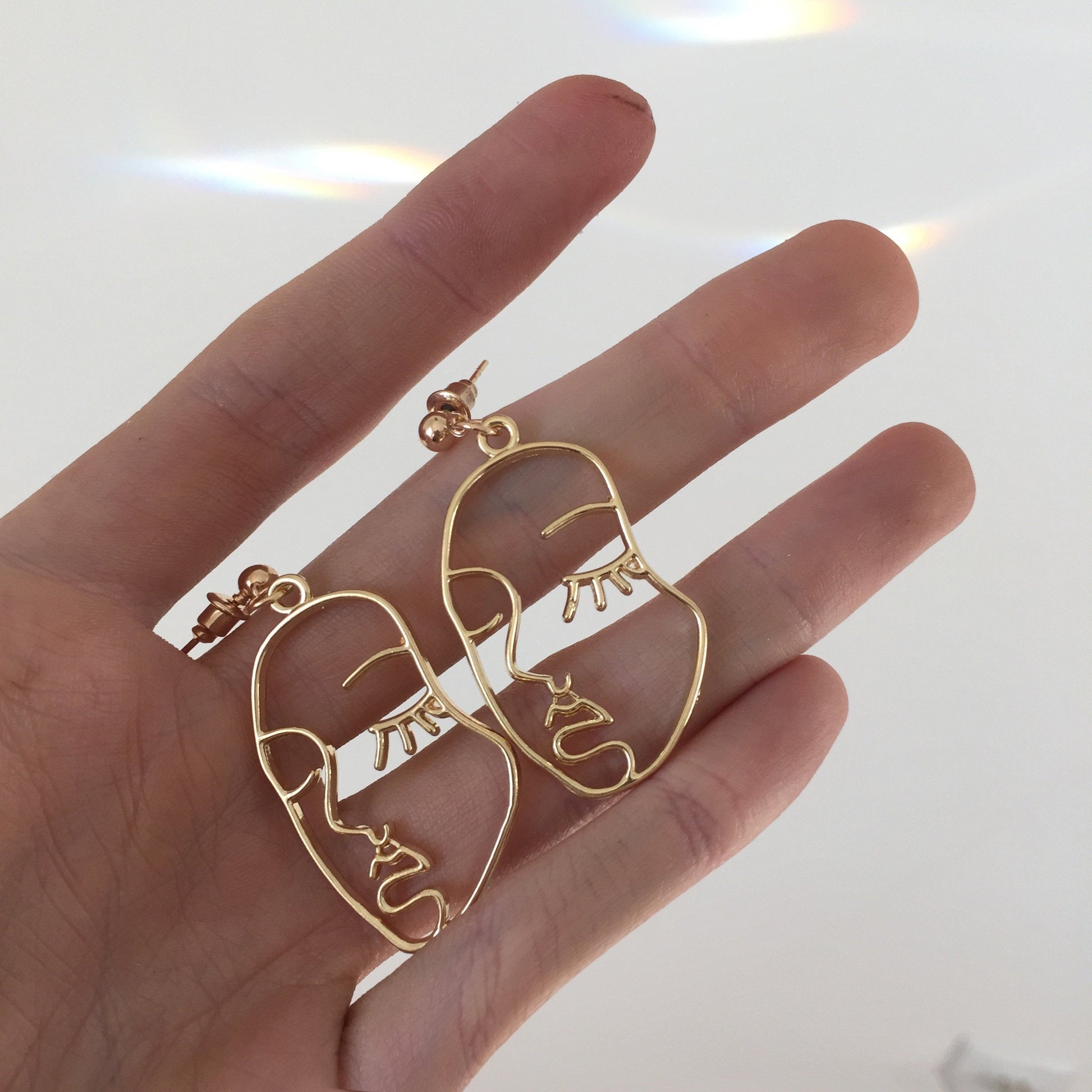 These Picasso Earrings are perfect for the minimalist. These earrings feature carved faces crafted with Gold Plating.