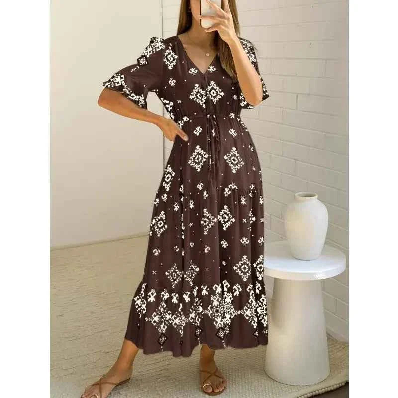 Plus Size Womens Summer Loose Boho Flowy Wrap V Neck 3/4 Sleeve Floral Print Slit Beach Wedding Guest Long Maxi Dresses Vistidos