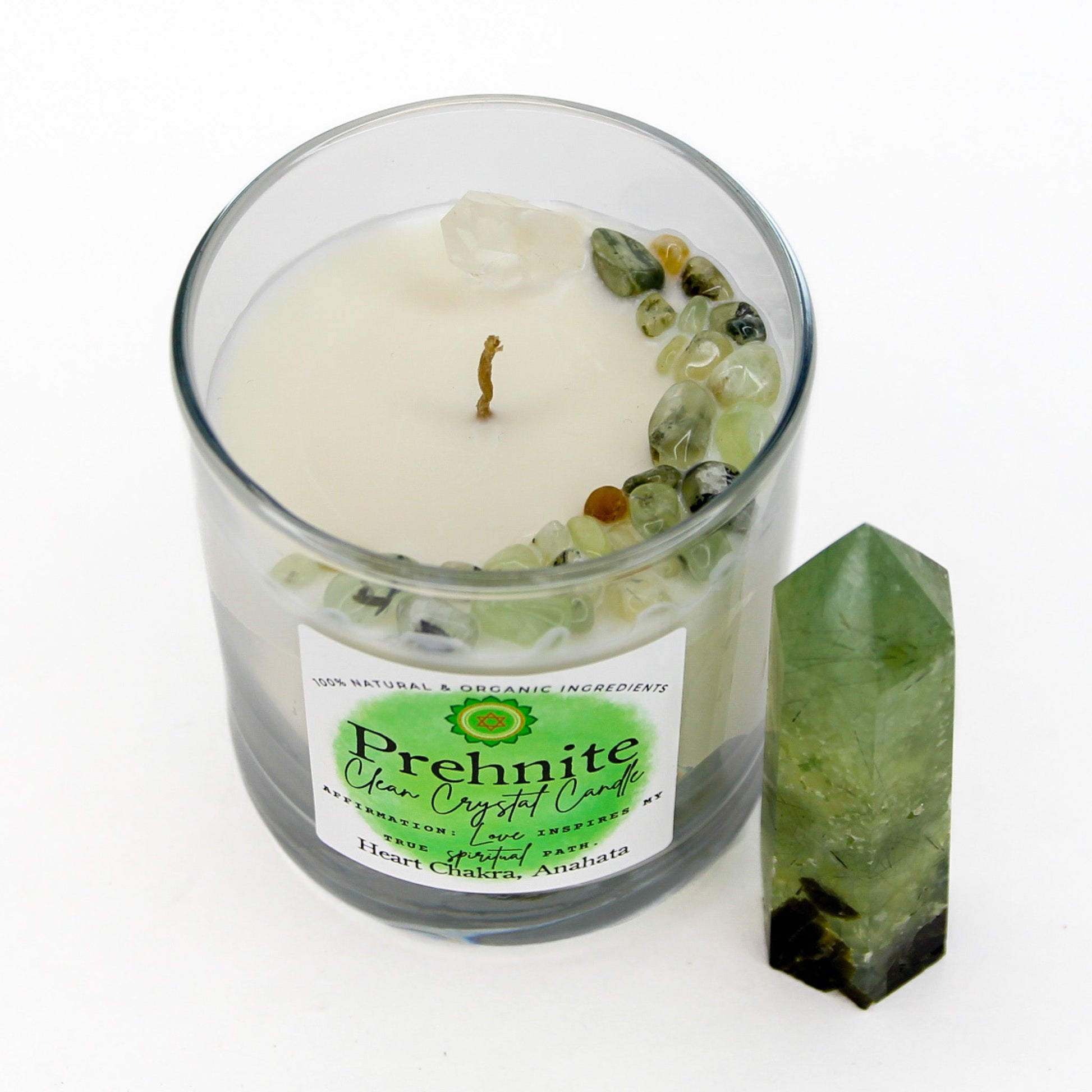Simple and intentional, this hand-poured candle is infused with Prehnite crystals and a clear quartz point, designed to help you (re)connect to yourself. Use this candle to cultivate a nourishing atmosphere and make space for more mindfulness and joy in your everyday life. Shakti SOULutions candles are non-toxic, non-GMO, cruelty-free and contains no artificial fragrances, dyes, petroleum or paraffin. They are made with love in the mountains of Colorado.