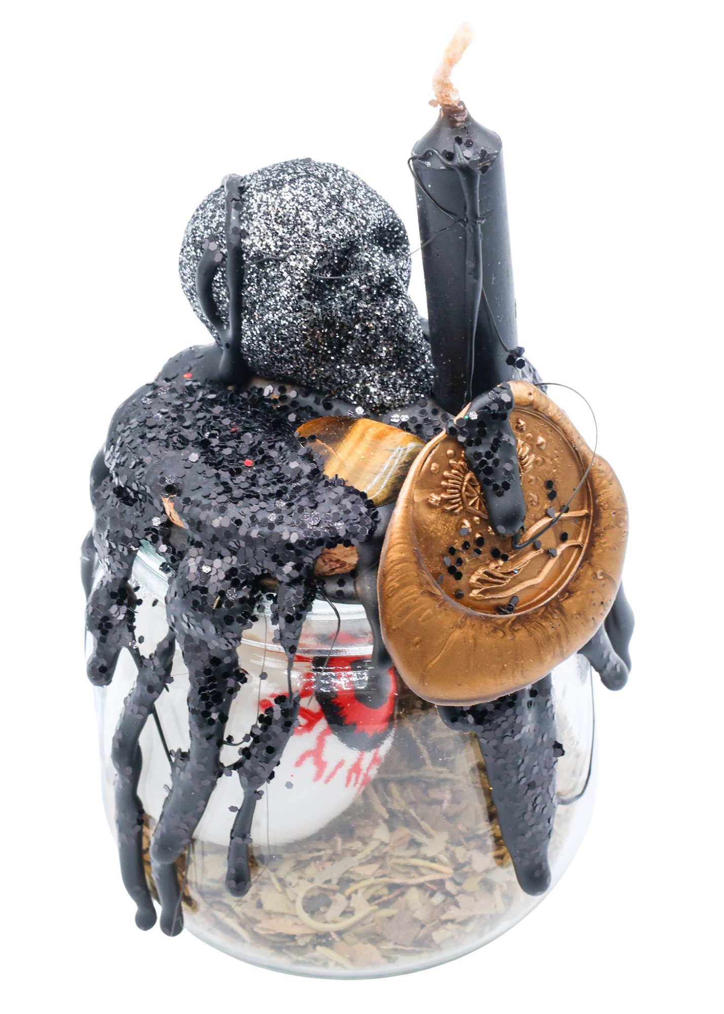 Candle on Top – A ritual candle sits atop the jar, ready to be lit during spellwork to activate the jar’s protective energy and send your intentions into the ether.