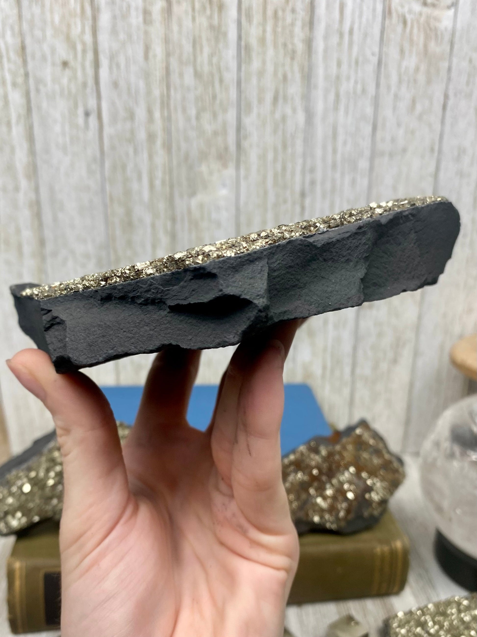 Pyrite on Shungite Raw Layered Plate | Brazil
