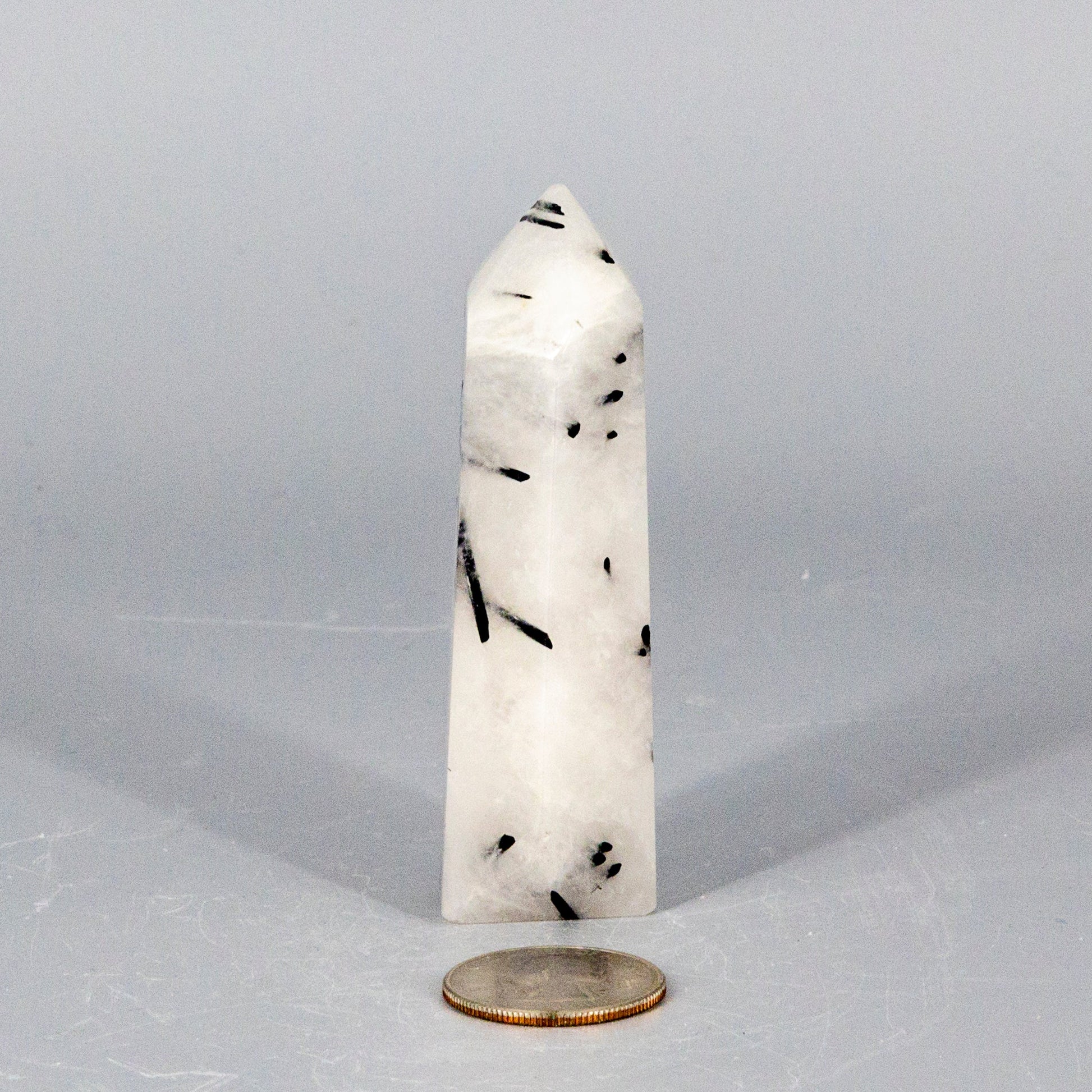 Quartz with Black Tourmaline Tower is a powerful crystal formation prized for its unique combination of energetic properties. The clear quartz amplifies energy and intention, making it an excellent tool for meditation, manifestation, and spiritual growth.