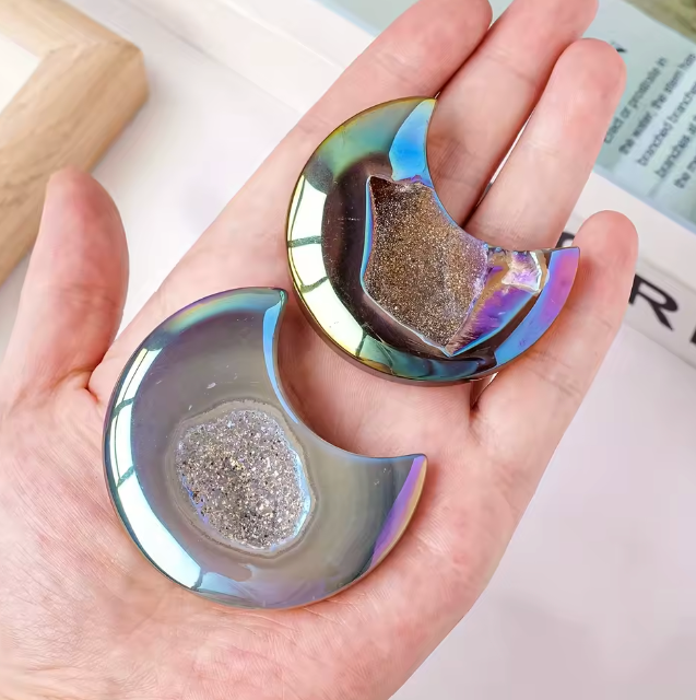 ✪ Rainbow Druzy Agate is a stone that is associated with love, peace, stress relief, intuition, and the strengthening of the spirit. This gives the stone an eye-catching glitter and shine.
