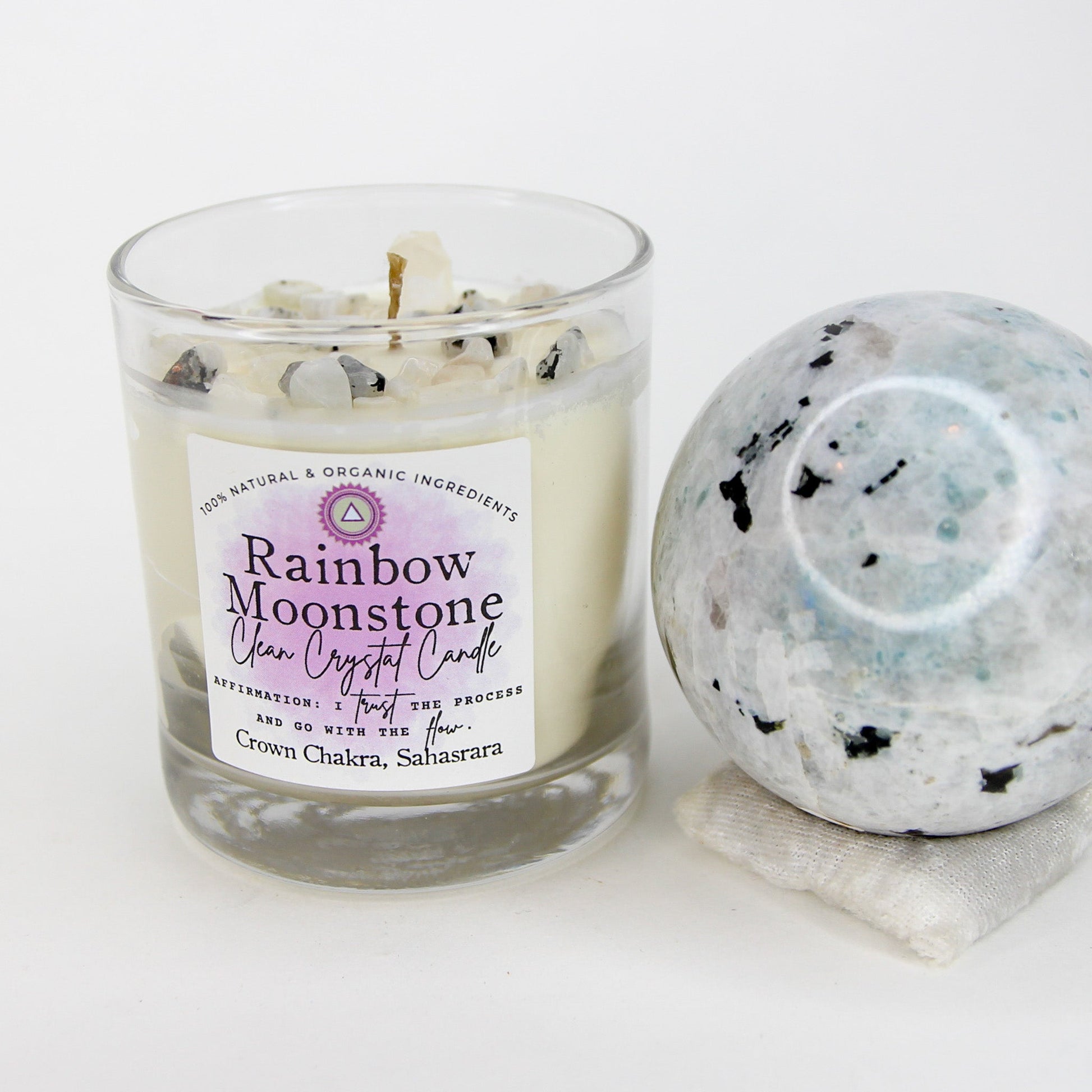 Rainbow Moonstone Clean Crystal Candle
