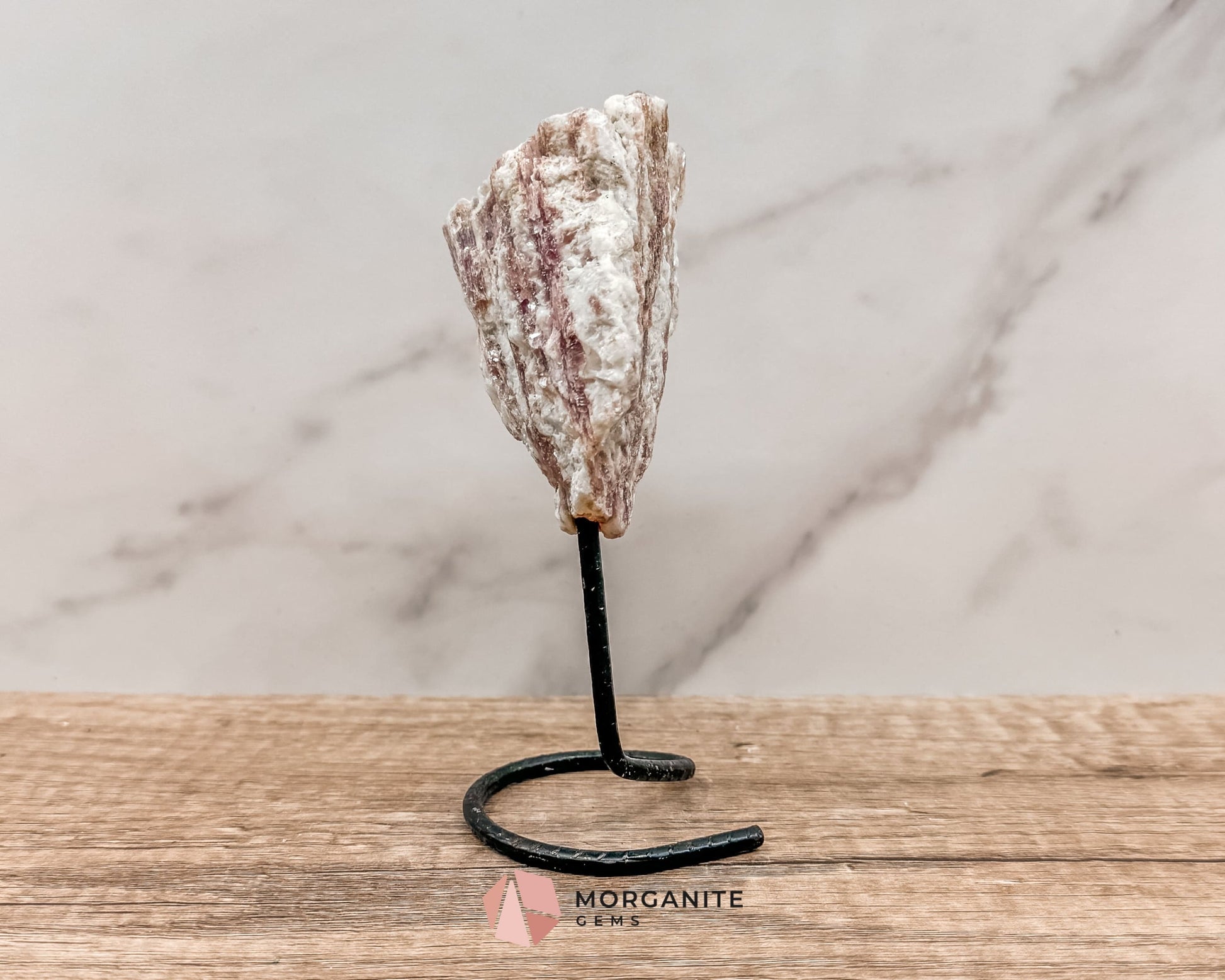 Raw Pink and White Tourmaline on Metal Stand – Healing Crystal for Love, Balance & Emotional Support