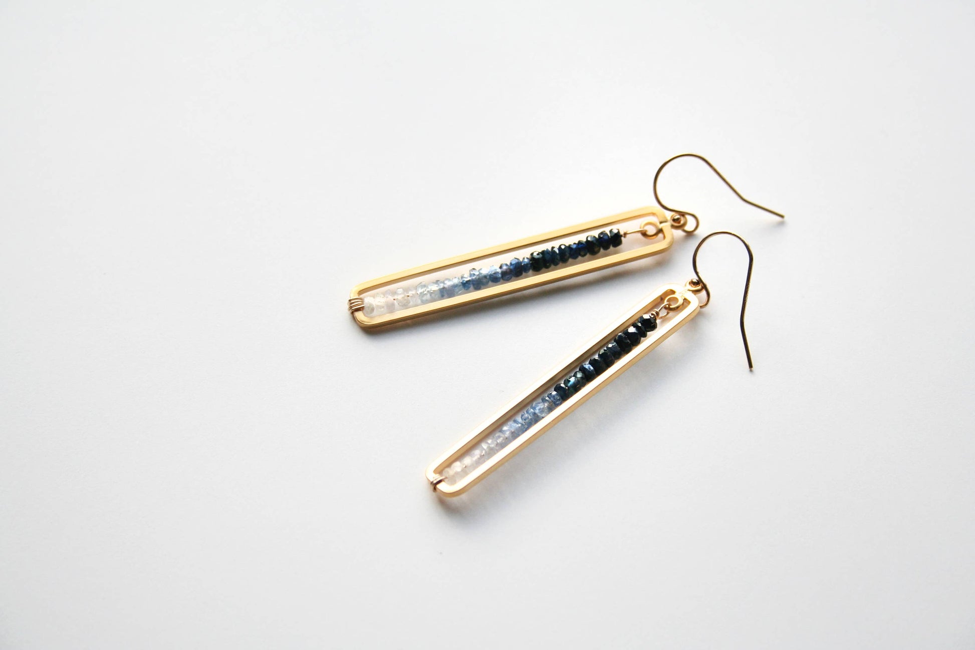 Sapphires are plentiful in these earrings. Ombre ranging from deep indigo blue to clear with a hint of pale blue. Elegant and sophisticated.