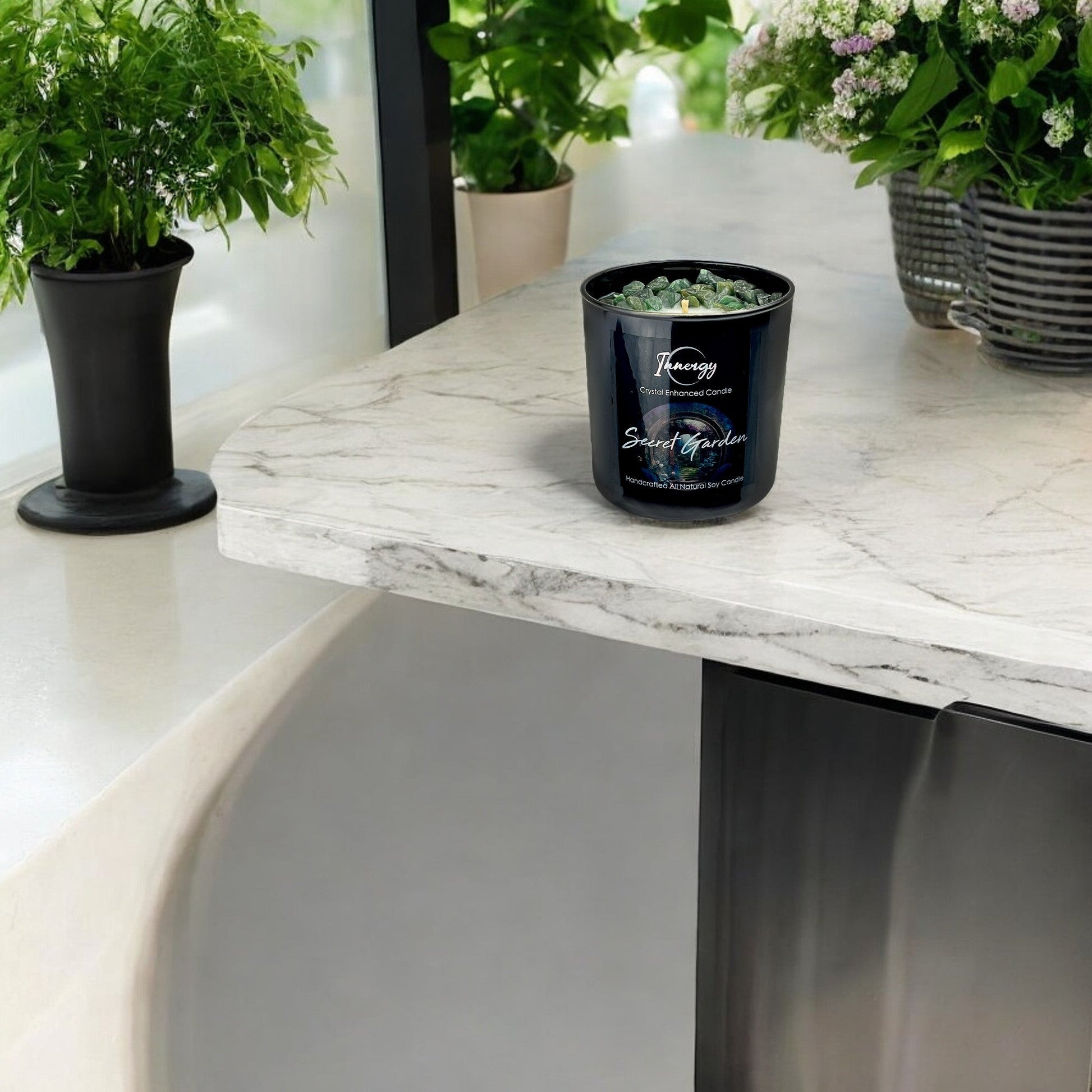 Secret Garden Crystal Candle with Green Aventurine | Coconut-Soy Wax Candle, 9oz