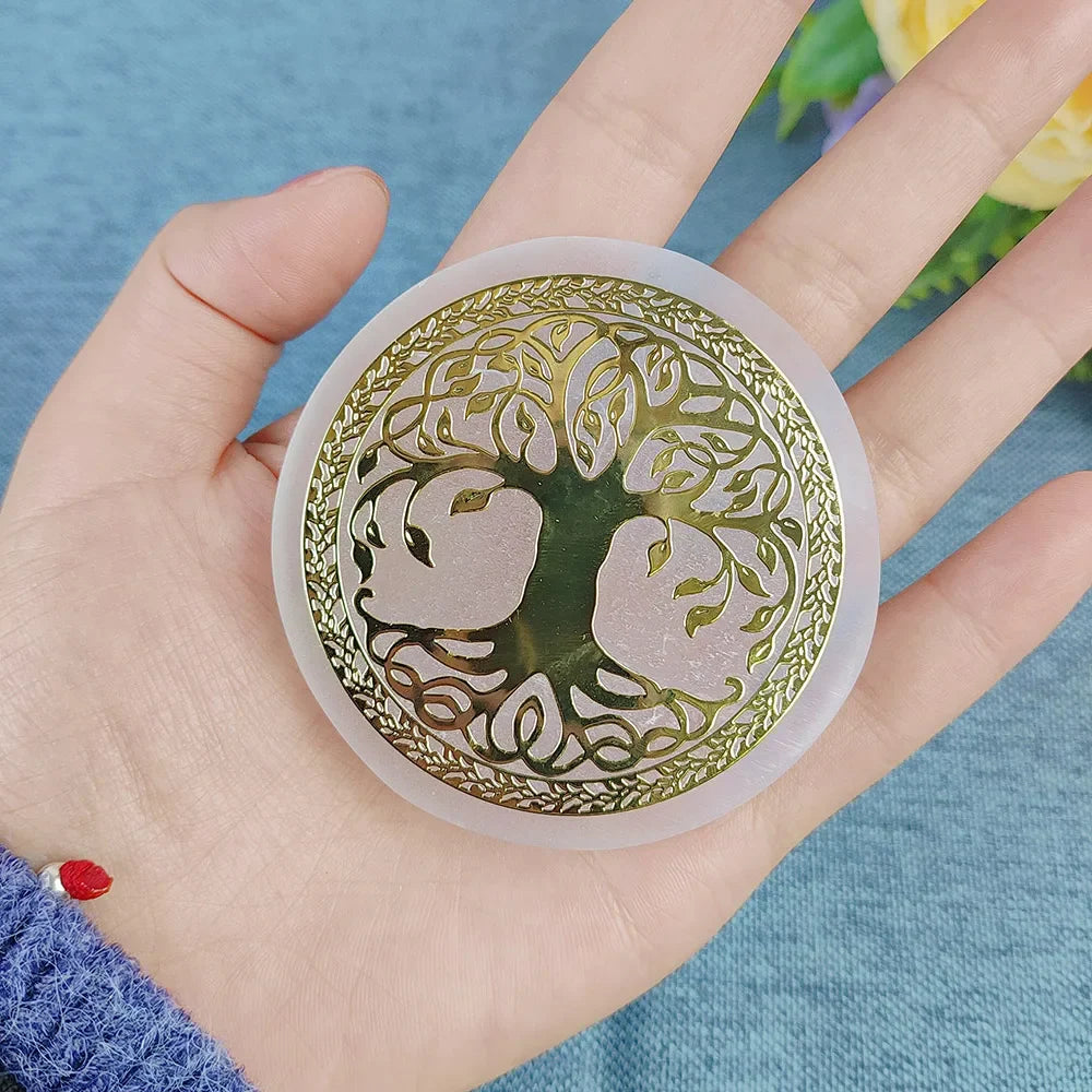 Natural Crystal Selenite Slice Slab White Gypsum 7 Chakras Flower of Life Charging Plate Yoga Meditation Healing Decor Gifts