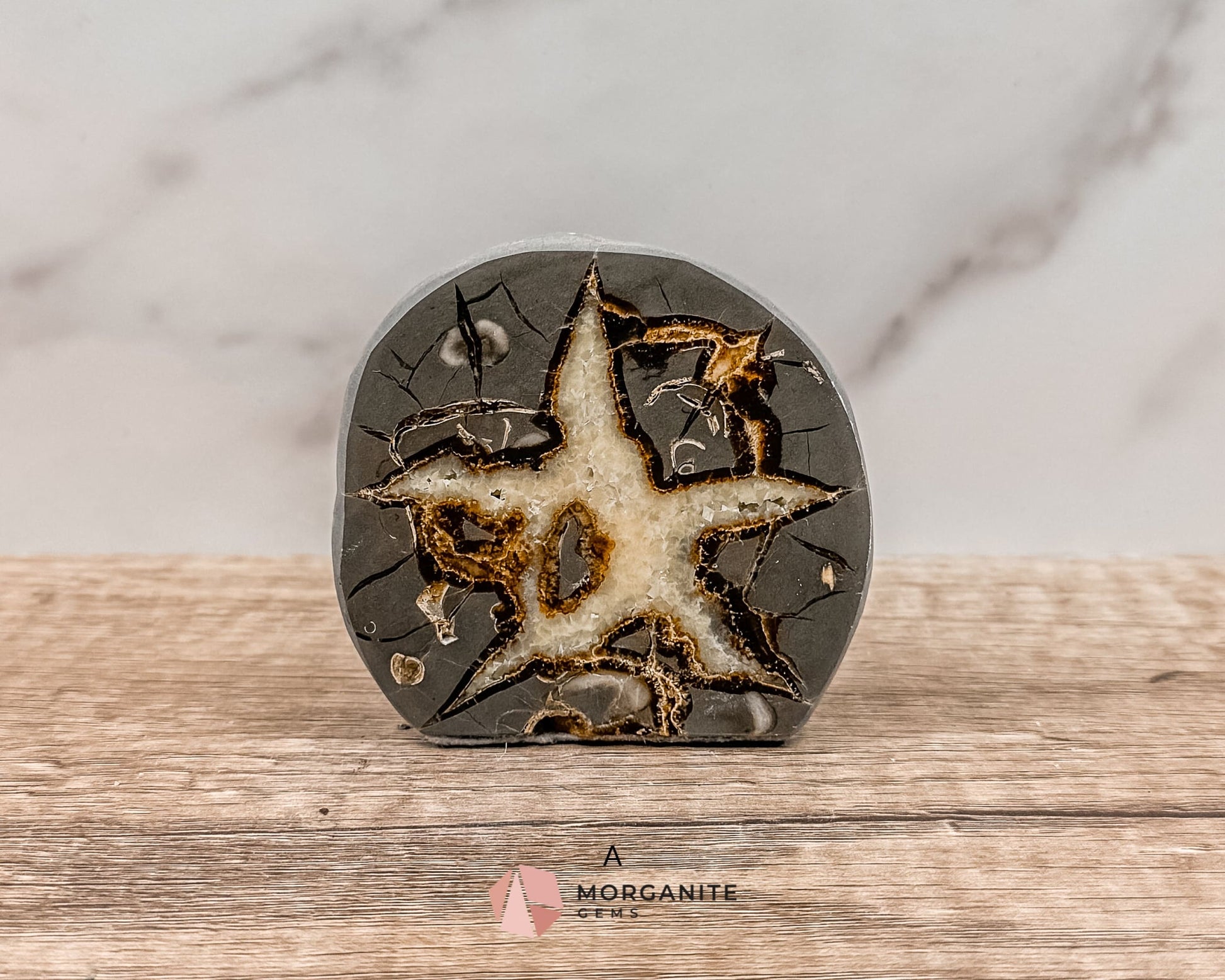 Known for their grounding and protective properties, Septarian nodules are also said to enhance creativity, focus, and connection to the earth. Ideal for meditation, energy work, or as a beautiful addition to home decor, these polished end-cuts bring warmth and grounding energy to any space. Each piece is a one-of-a-kind natural artwork that highlights the ancient origins of this extraordinary fossil crystal.