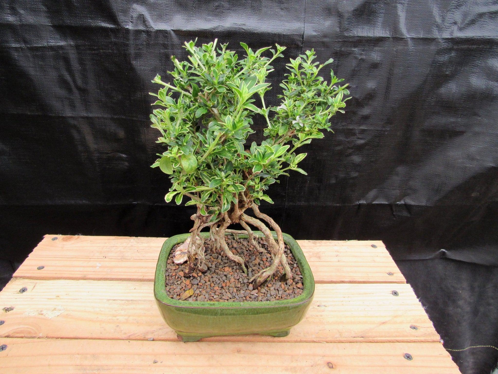 The Mt. Fuji Serissa bonsai has beautiful white, star-shaped, miniature flowers. This sub-tropical variegated evergreen, which is imported from Japan, can bloom profusely with delicate white miniature flowers.
