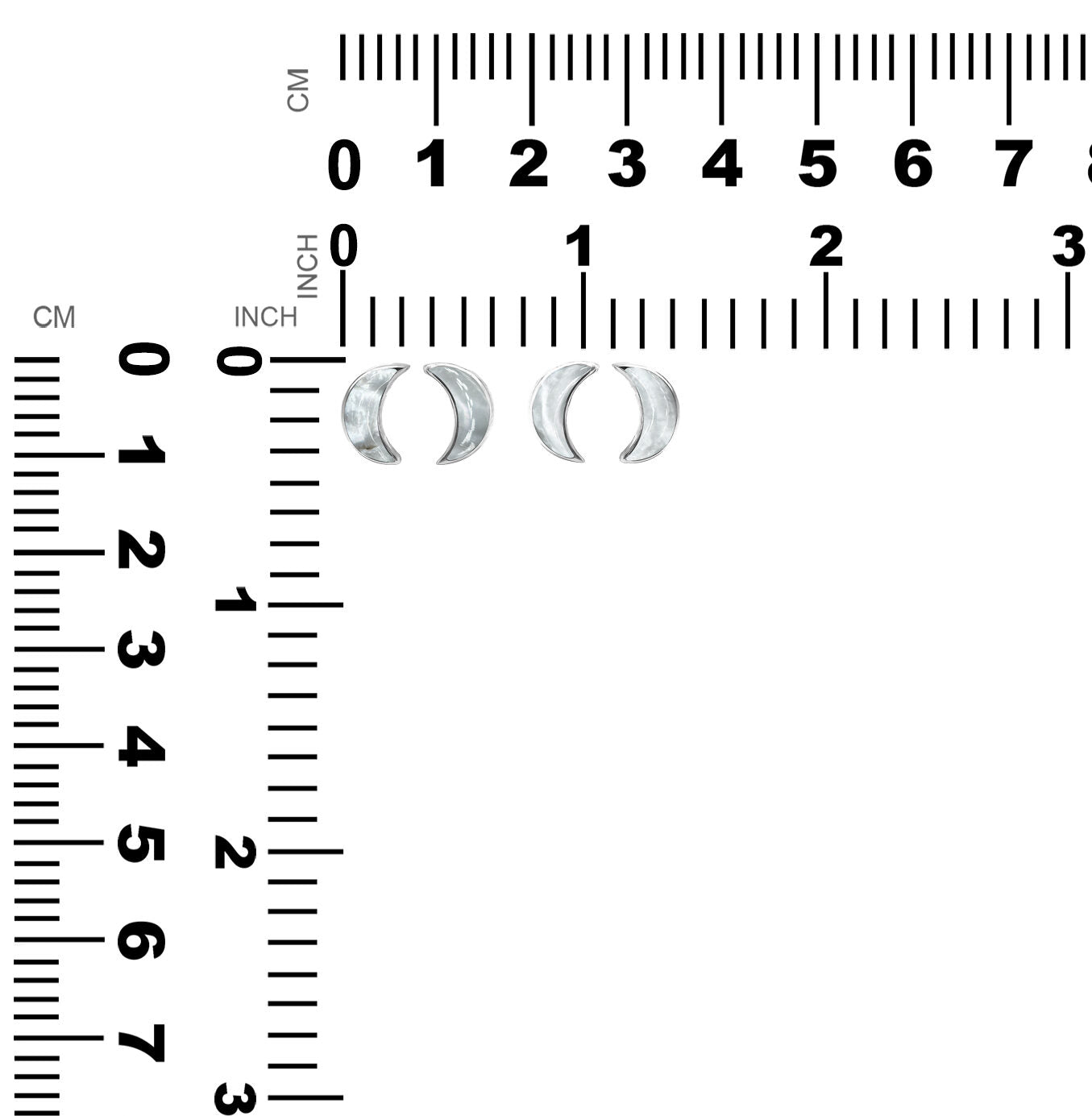 - Shimmering with rare elegance, these crescent moon post earrings feature luminous 10 mm Mother of Pearl cabochons. Handcrafted in Fine Sterling Silver and measuring 11 mm, they evoke the serene beauty of moonlight.