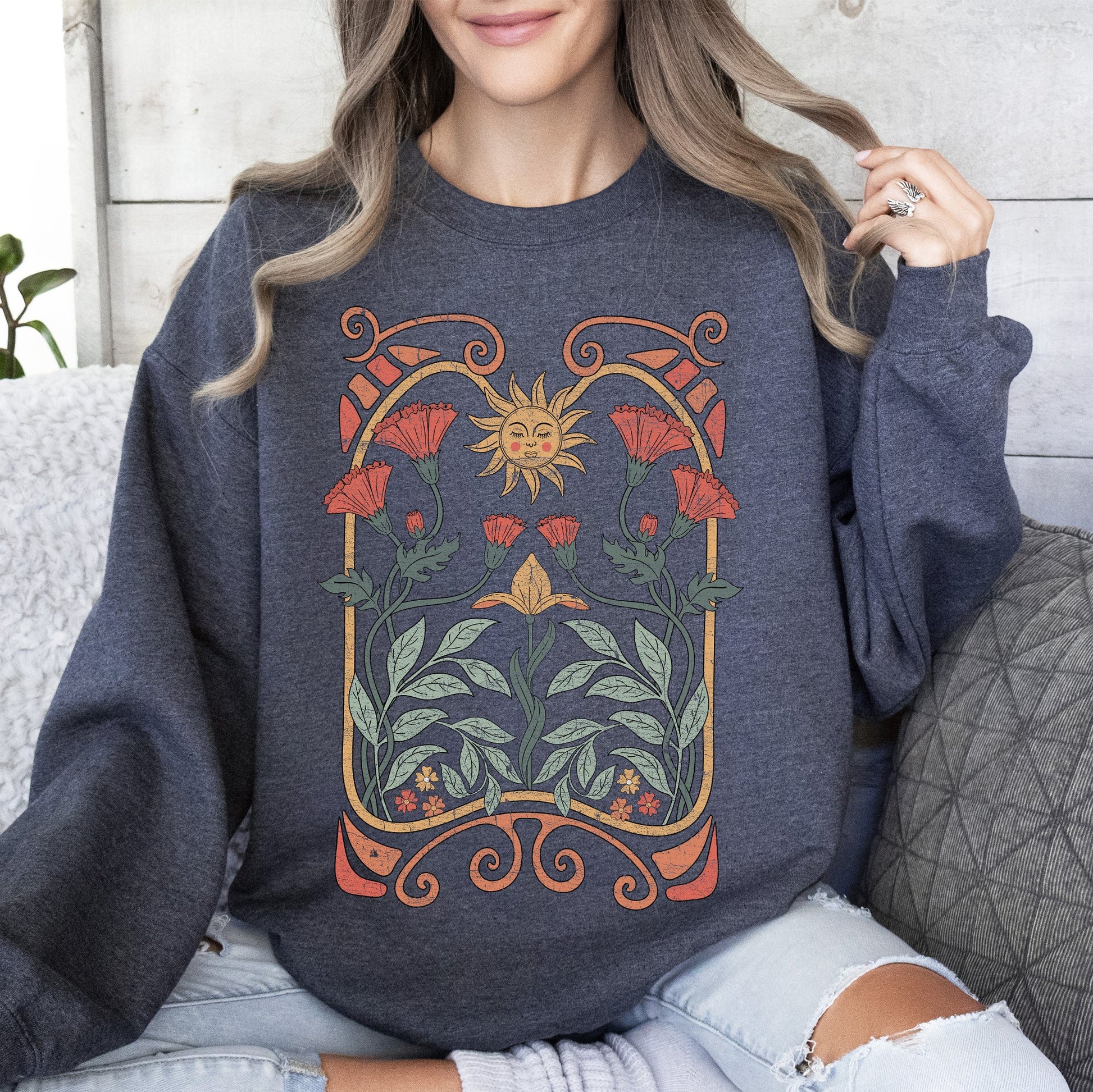 Experience the perfect blend of style and comfort with our Sun Art Deco Design, Celestial Art Nouveau, Colorful Sweatshirt. This unique sweatshirt not only elevates your wardrobe but also showcases your individuality through its vibrant and expressive graphics. Crafted from a cozy cotton-polyester blend, this unisex pullover guarantees a soft, brushed fleece interior that feels great against your skin.