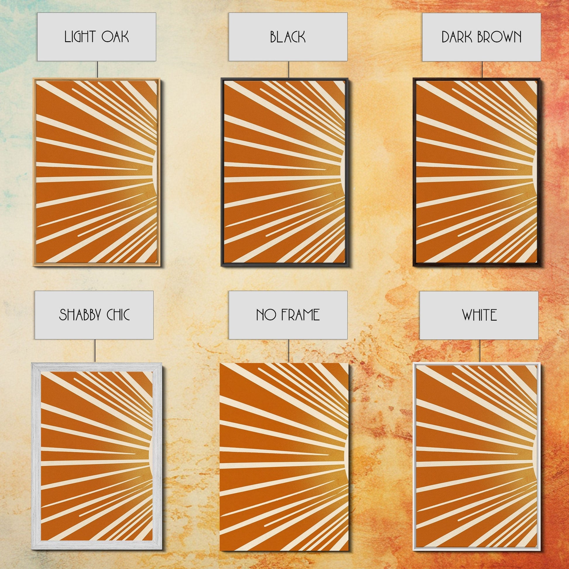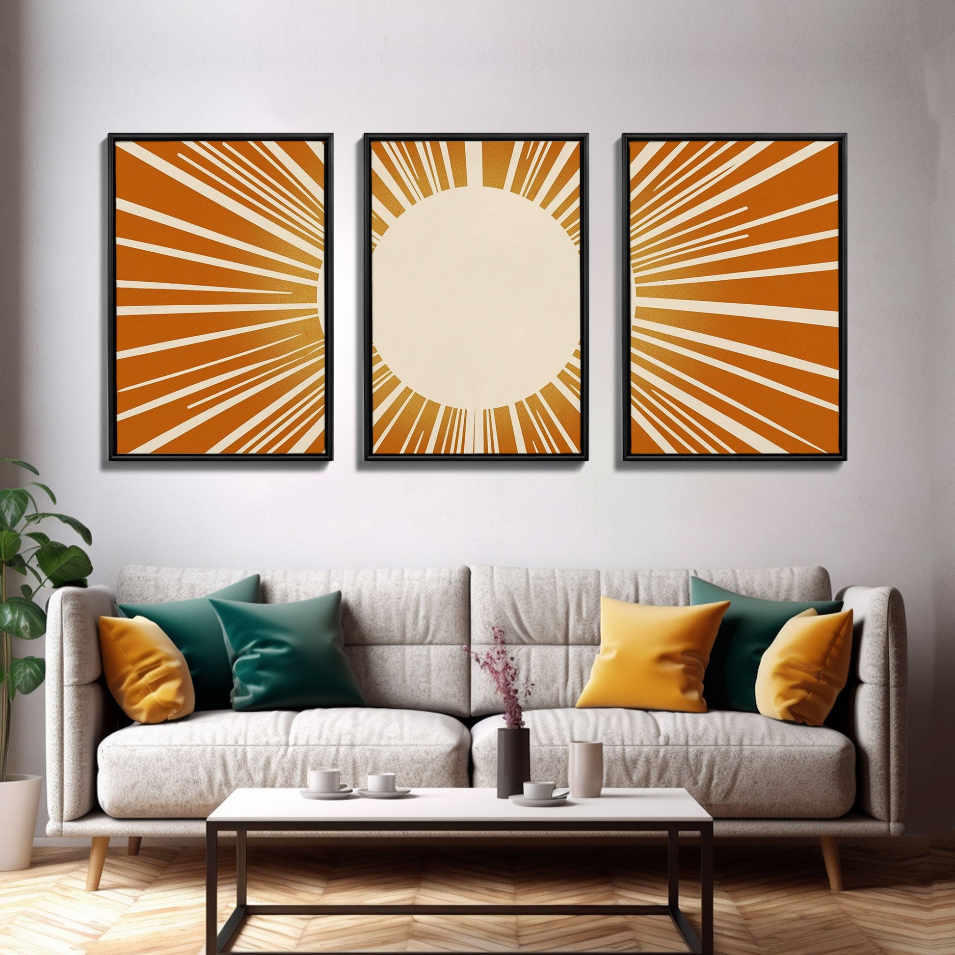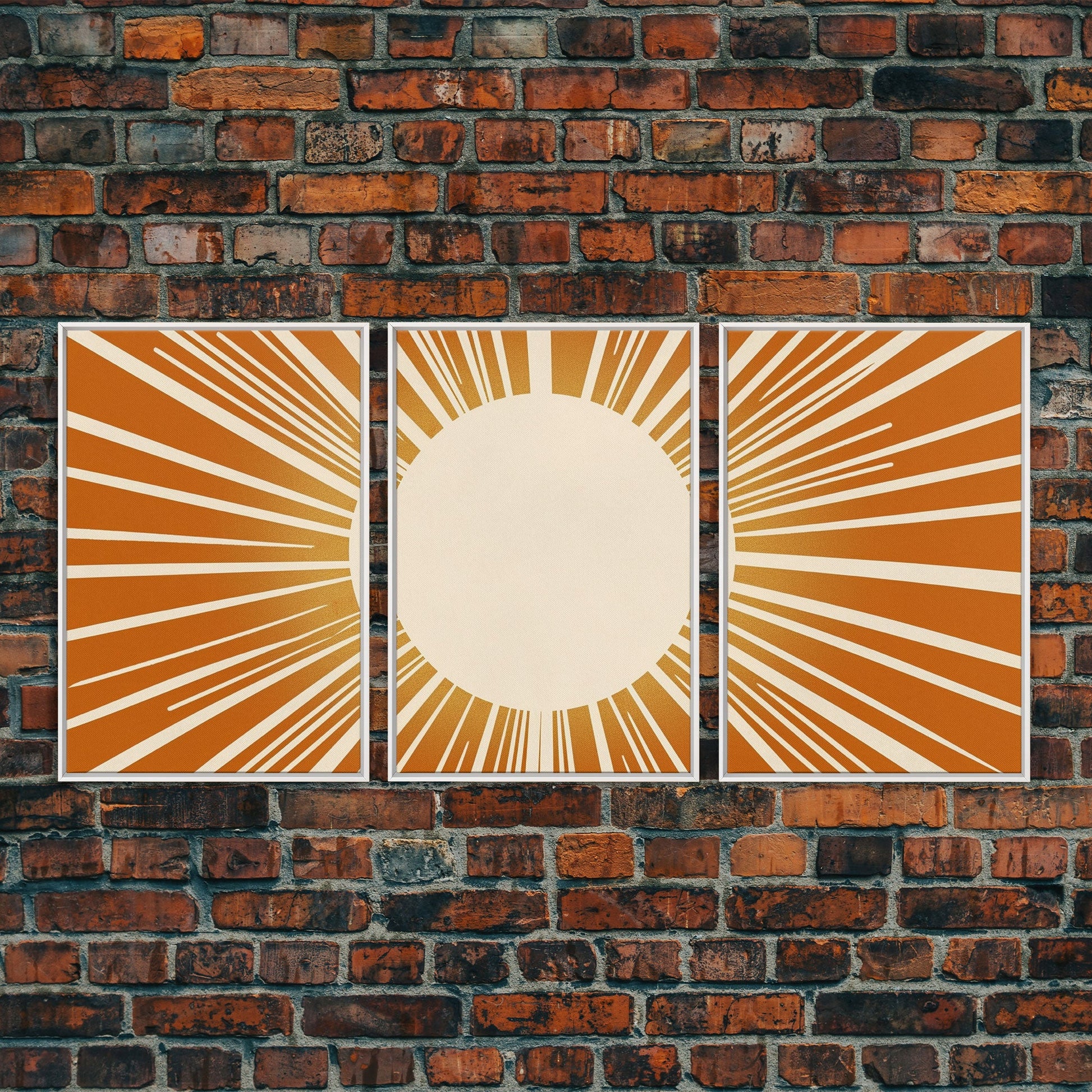 Sun Print Set Of 3, Framed Canvas Prints, Boho Minimalist Midcentury Modern Wall Art, Geometric Sun Print, Nursery Boho Style Decor Triptych