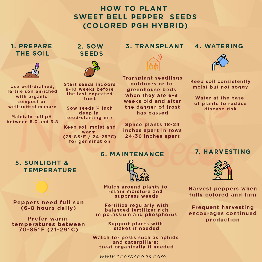 Sweet Bell Pepper Seeds for Planting – Colored PGH Hybrid, High Yield, Non-GMO Vegetable Seeds