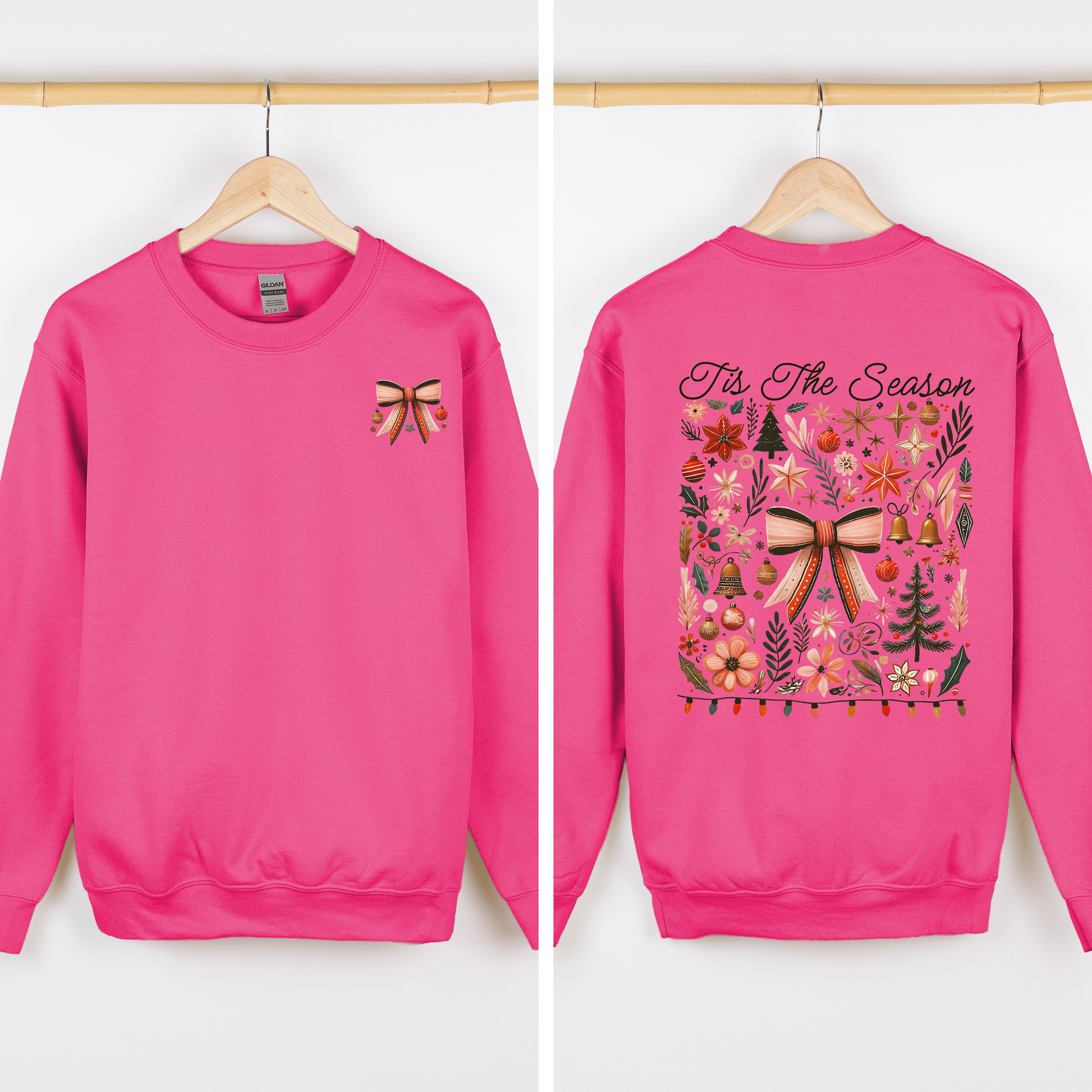 Tis the Season, Christmas, Ribbons, Front and Back, Santa Sweatshirt