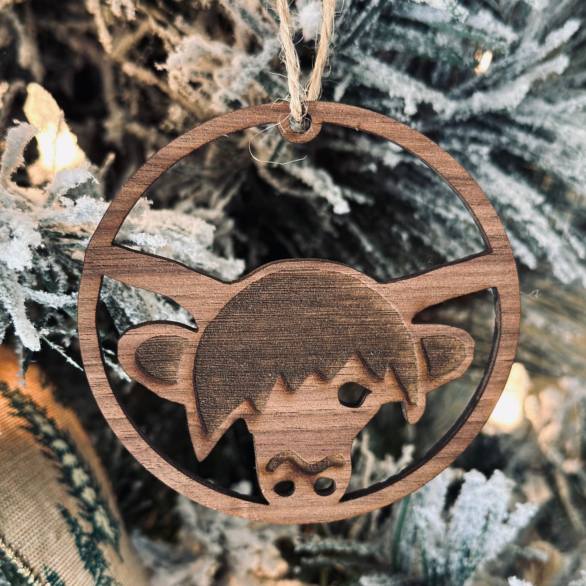 Every pattern is hand drawn and laser cut here locally in Paradise, CA, some patterns exclusively designed for Thistle & Stitch. Ornaments measure between approximately 2.5" - 3.75" in diameter.