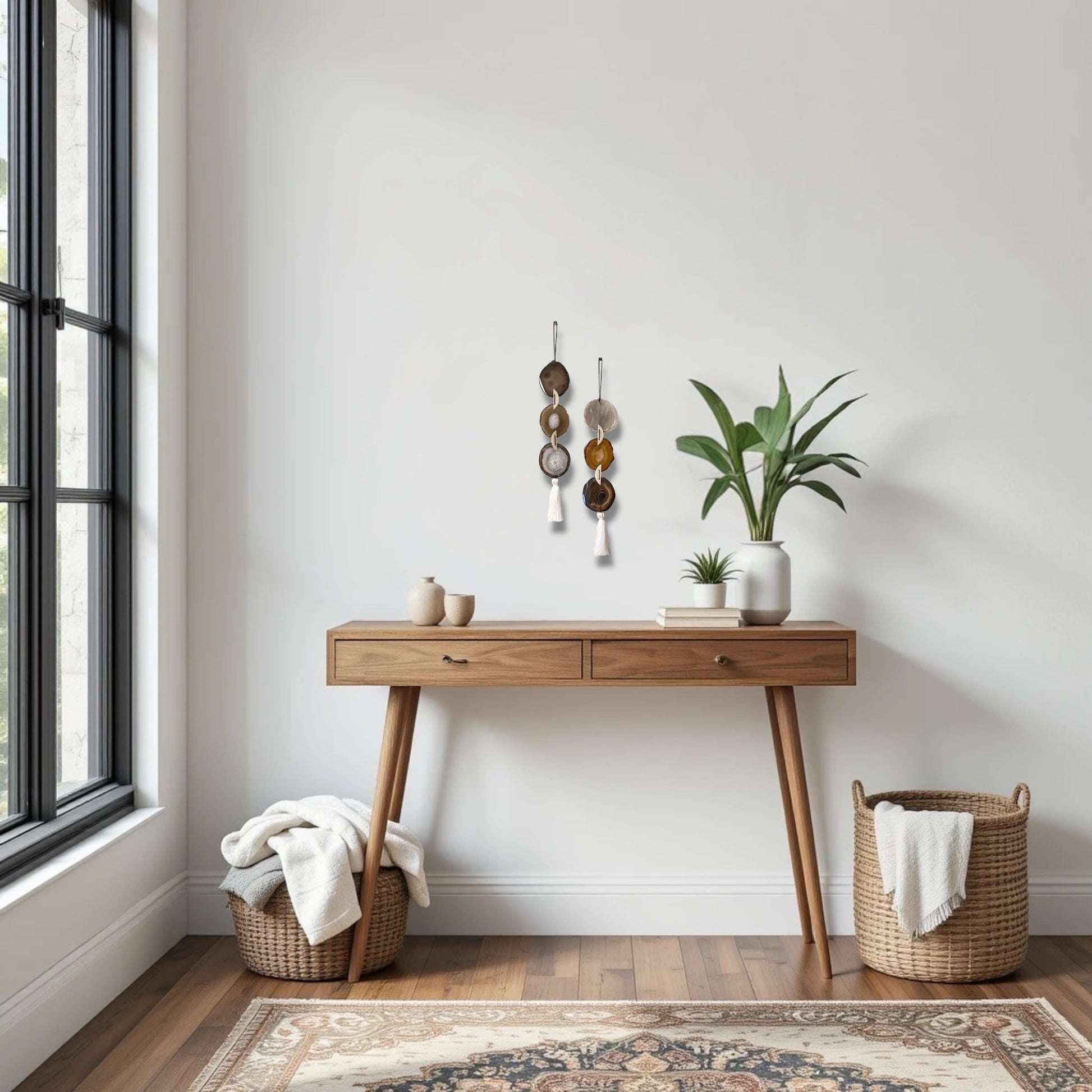Add a touch of bohemian charm to your home with our Handcrafted Umber Agate Garland Wall Hanging, an exquisite piece that blends modern design with nature’s raw beauty. Featuring six premium Brazilian agate slices, this garland radiates warm earthy tones, making it the perfect accent for any space. Each agate slice is hand-selected for its unique patterns, ensuring that no two pieces are alike.