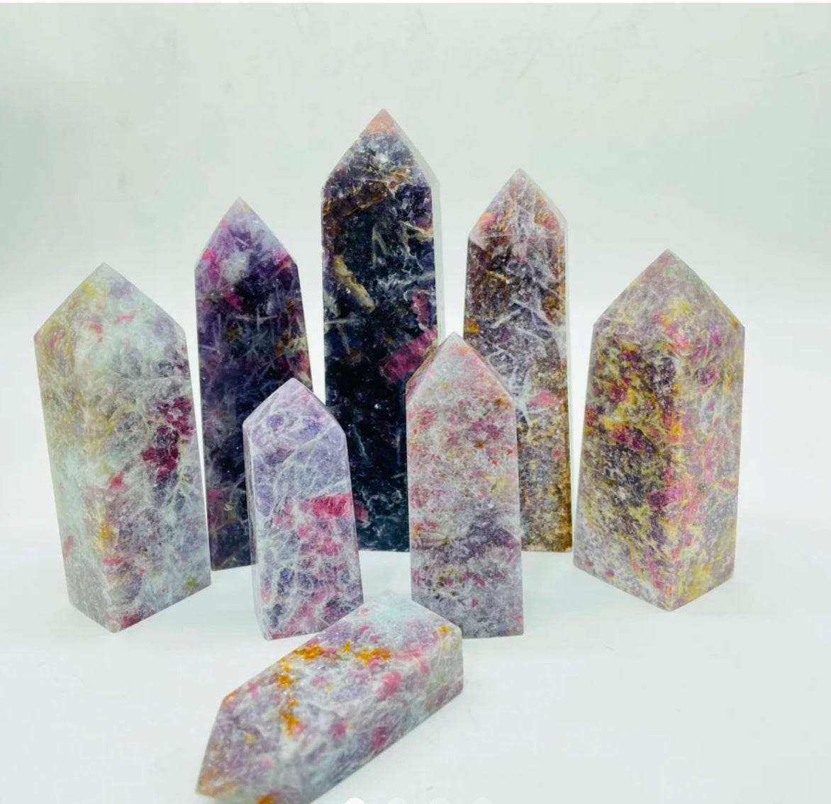 Invite deep emotional healing and inner peace with our Unicorn Stone Tower—a rare and nurturing crystal blend that carries the gentle energy of self-love, patience, and spiritual growth. This stone features a natural mix of Lepidolite, Pink Tourmaline, Smoky Quartz, and Cleavelandite, creating a calming and supportive presence for the heart and mind.