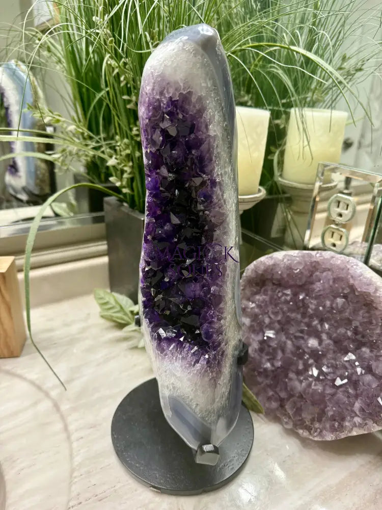 Uruguay Rare Dark Purple Amethyst Geode on Stand – 15.5 lbs