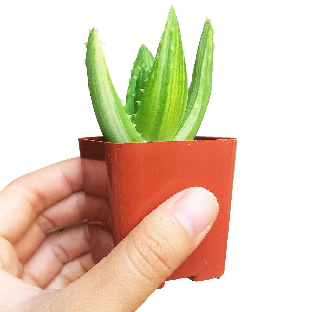 Our beautiful rooted Variegated Aloe Plant is available in 4 inch size. Variegated Aloe, a rare Aloe species, has amazing white/cream and green stripes. Its leaves are toothed and sword-shaped. This is a sprawling succulent that can grow up to 10 ft (3m). Deep orange or red flowers bloom about 2 ft above the foliage. Light/Soil/Water: + Partial to Full sun. + Porous and well-drained succulents mix. Cactus soil or Mixing in sand and perlite. + Avoid letting water sit for too long in the soil. Do not overwater.