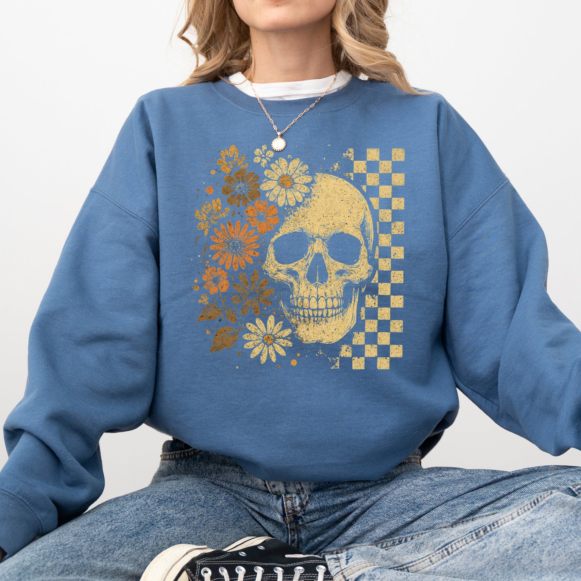 Vintage Skull, Floral, Checkered, Ghost, Halloween, Book, Cat, Western, Pumpkin, Retro, Spooky, Costume, Fall, Graphic Sweatshirt