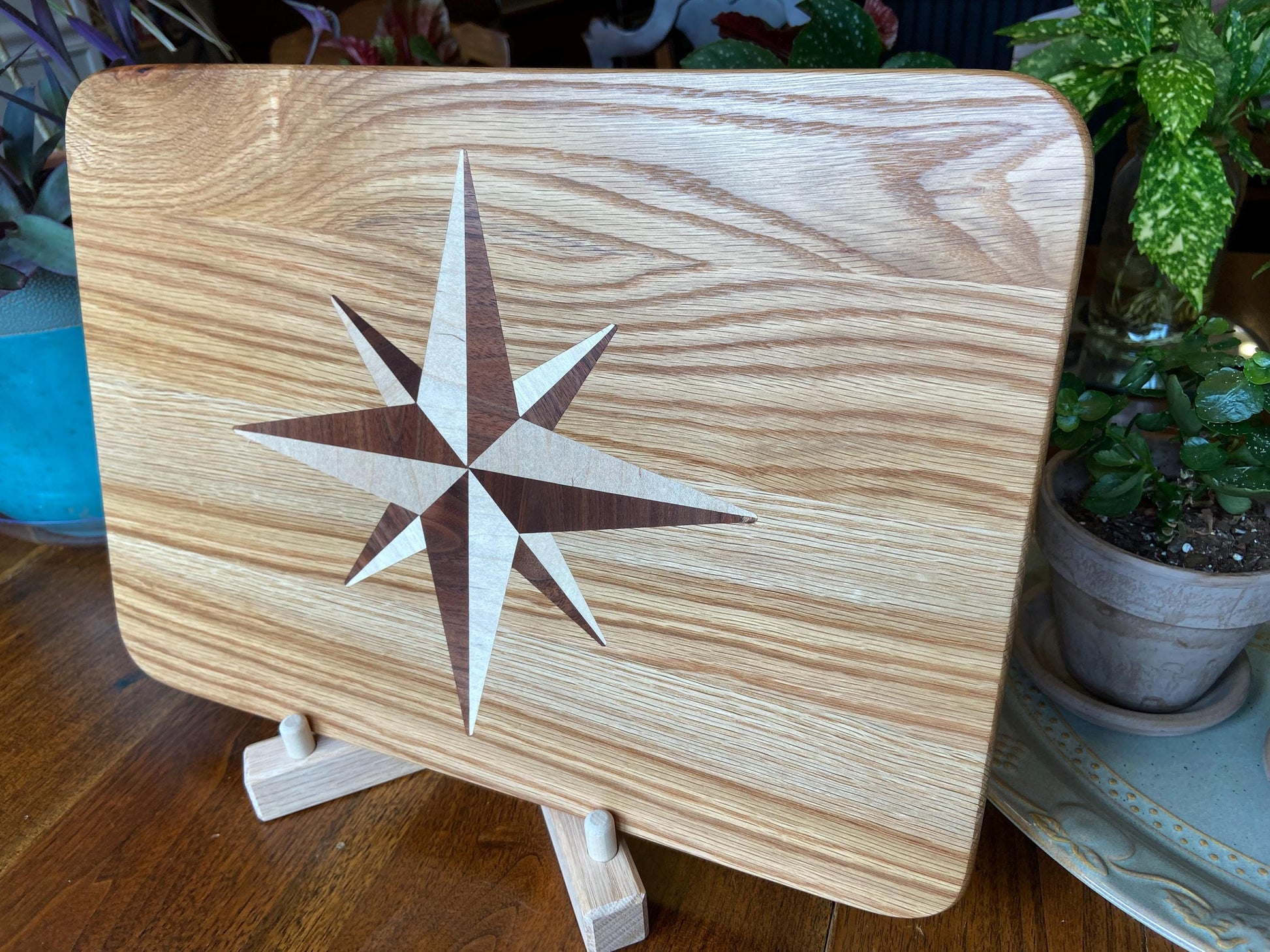SEO Description: Experience the beauty of our handcrafted White Oak charcuterie board featuring a stunning compass rose inlay. Perfect for entertaining guests or as a thoughtful gift. Shop now for unique, one-of-a kind serving board.