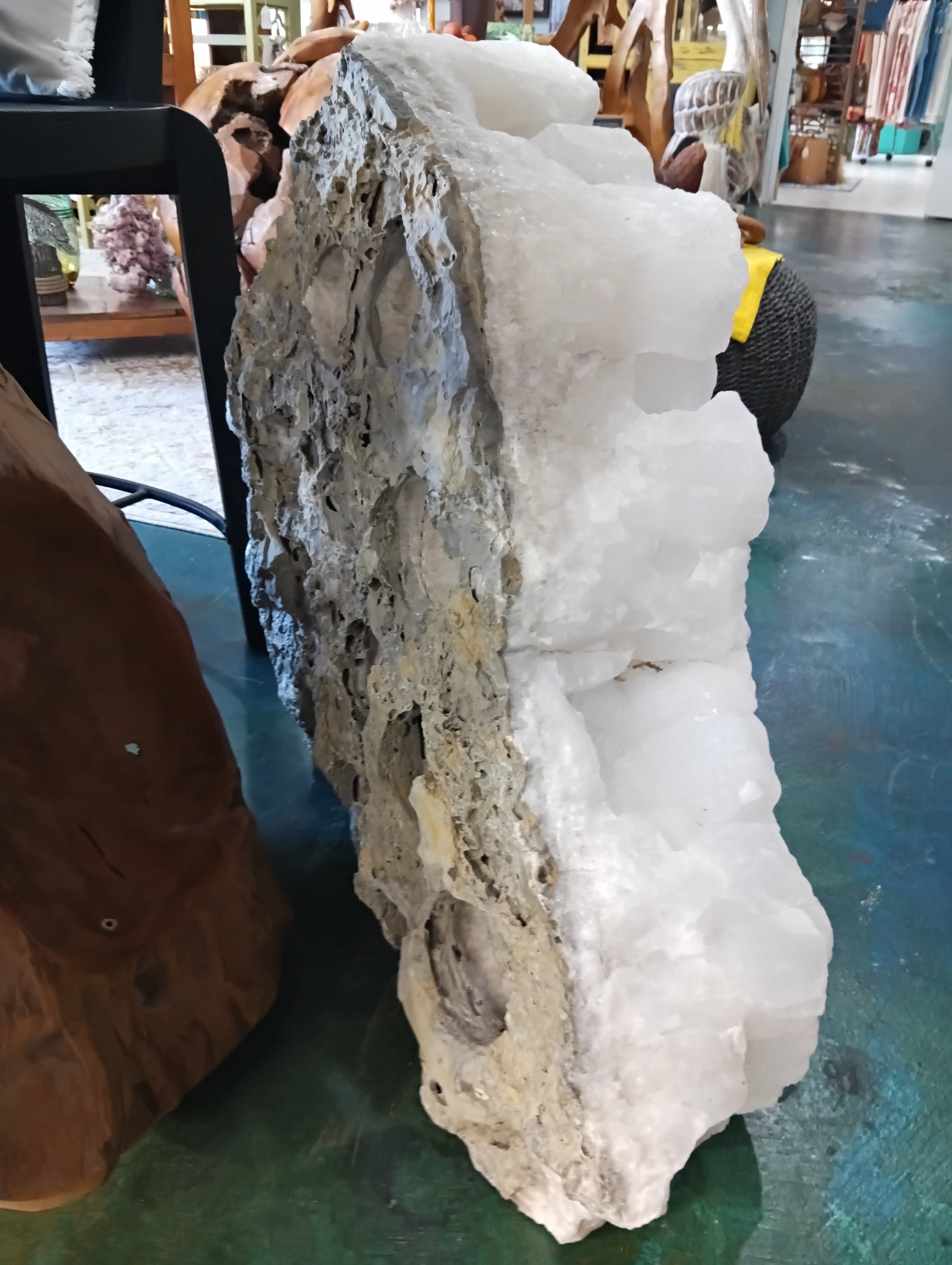 Elevate your wine storage with this sculptural White Onyx Wine Holder, a true statement piece for any coastal, rustic, or modern home. Hand-carved from solid white onyx, this naturally translucent stone features a crystalline texture that beautifully reflects ambient light. Its striking organic shape and sturdy design provide both aesthetic charm and practical function—offering space for up to 15 standard wine bottles.