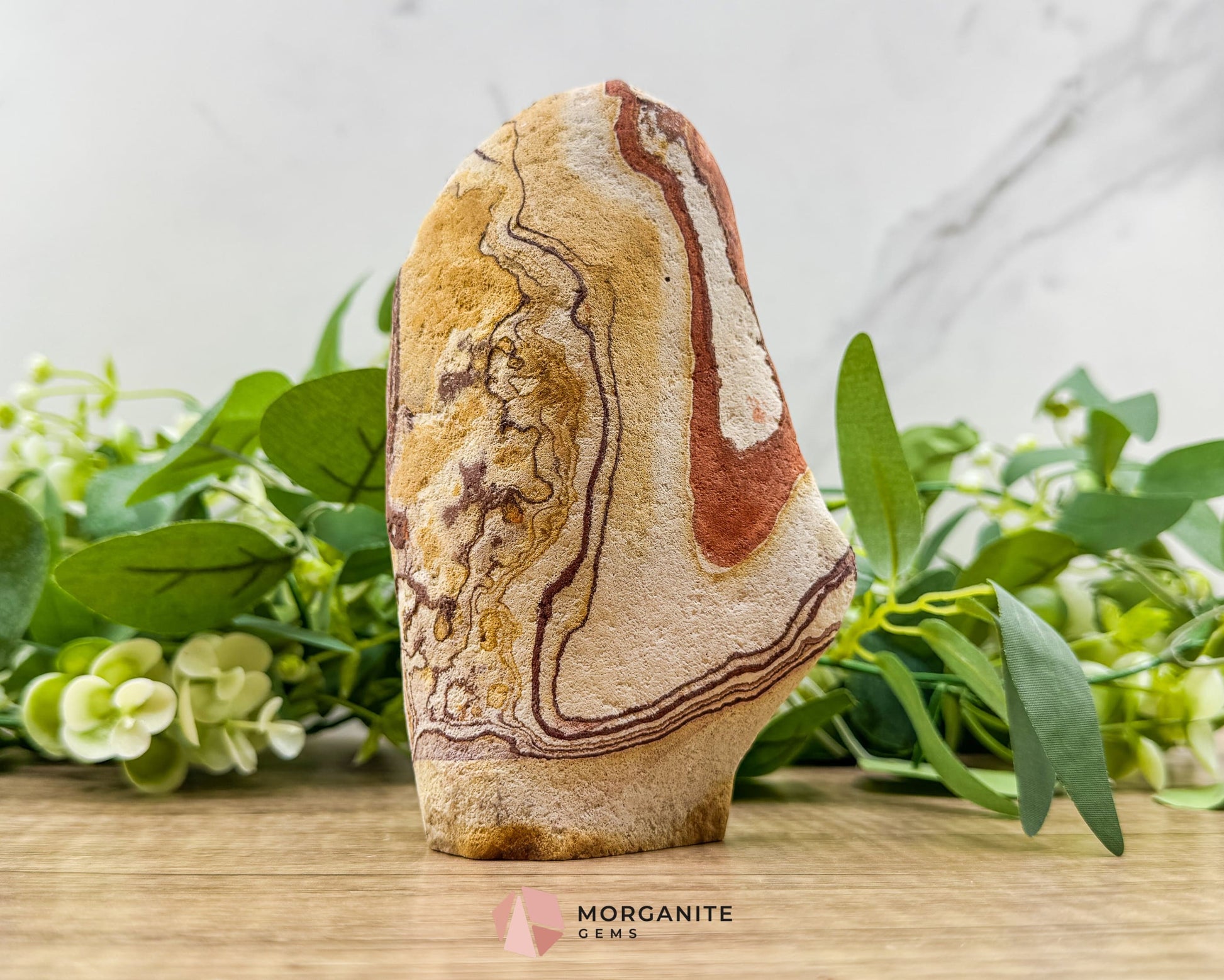Discover the beauty of this 6-inch Wonderstone Freeform, a natural stone masterpiece sourced from Utah’s mineral-rich landscapes. Carefully shaped and polished, this freeform showcases stunning layers of red, brown, gold, and cream swirls, making each piece completely unique. Wonderstone, a variety of rhyolite, is prized for its grounding energy and artistic natural patterns, making it a perfect addition to any collection.