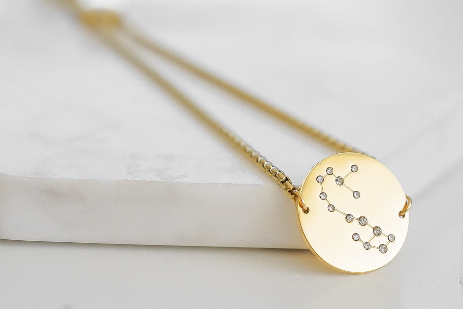 Gold Coin Constellation Astrology Disc Galaxy November October Zodiac Hypoallergenic Nickel Free All Metal Adjustable Bracelet. Custom Zircon Gemstones Accents And Designed With Love In Texas. Size 5.0 - 10.0 Inch Circumference With Custom Sizing Available On Select Pieces.
