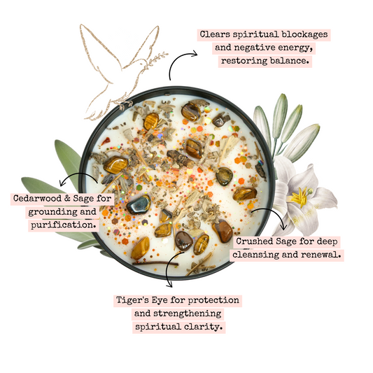 Crystal candles blend hand-poured wax with carefully selected stones to create a...