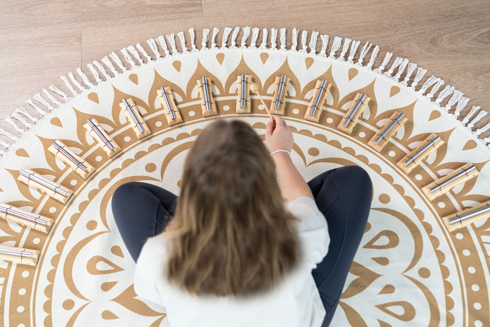 Position the chimes on the specified body regions for chakra healing or use them on their own to generate a harmonic soundscape.