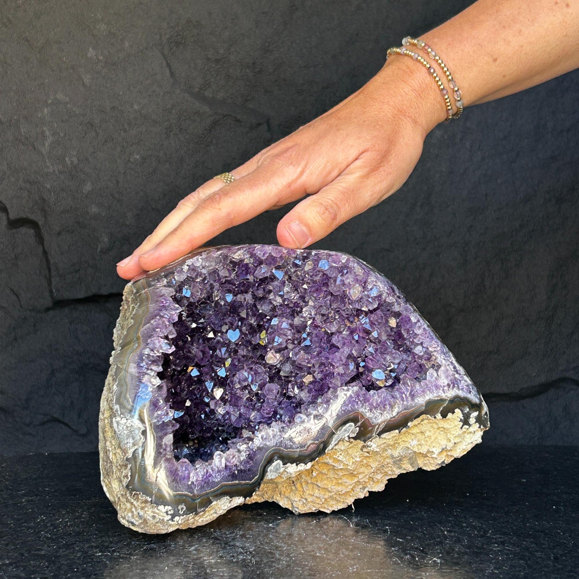 Its vibrant deep purple color is characteristic of the geodes extracted from URUGUAY, one of the few places in the world where you can find. It was extracted respecting the strict standards of open-pit mining in our country that ensure the safe work.