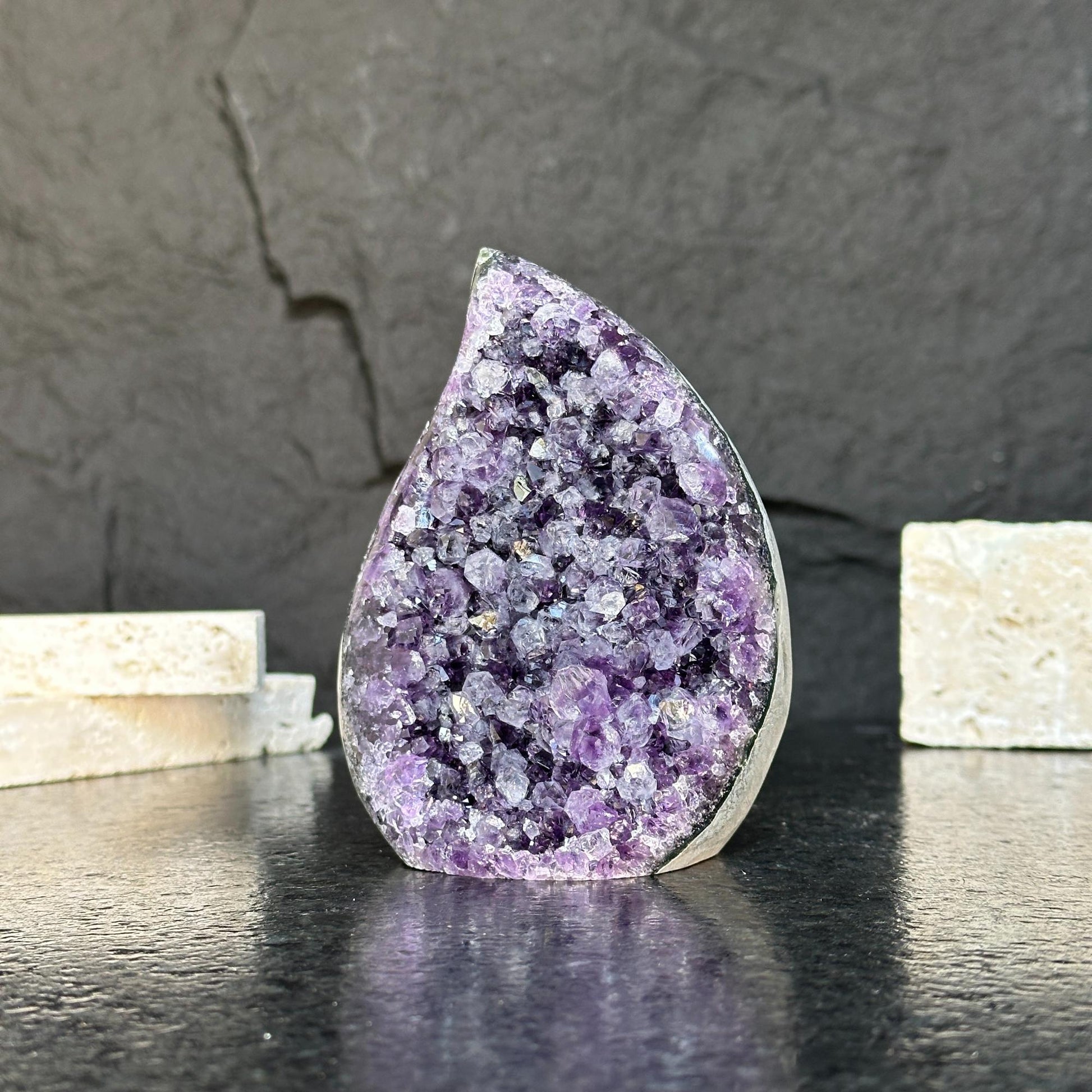 This amethyst crystal flame has the highest quality of the semi precious stones.