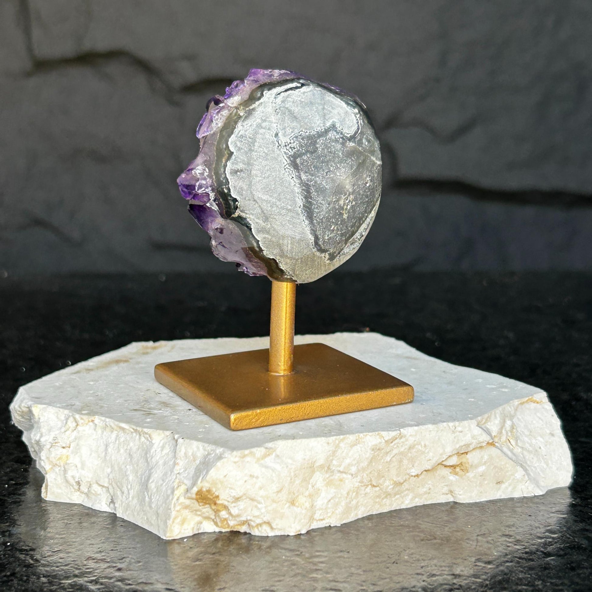 These A quality amethyst crystals with metal stand have the highest quality of the semi precious stones. Its colors are 100% natural.