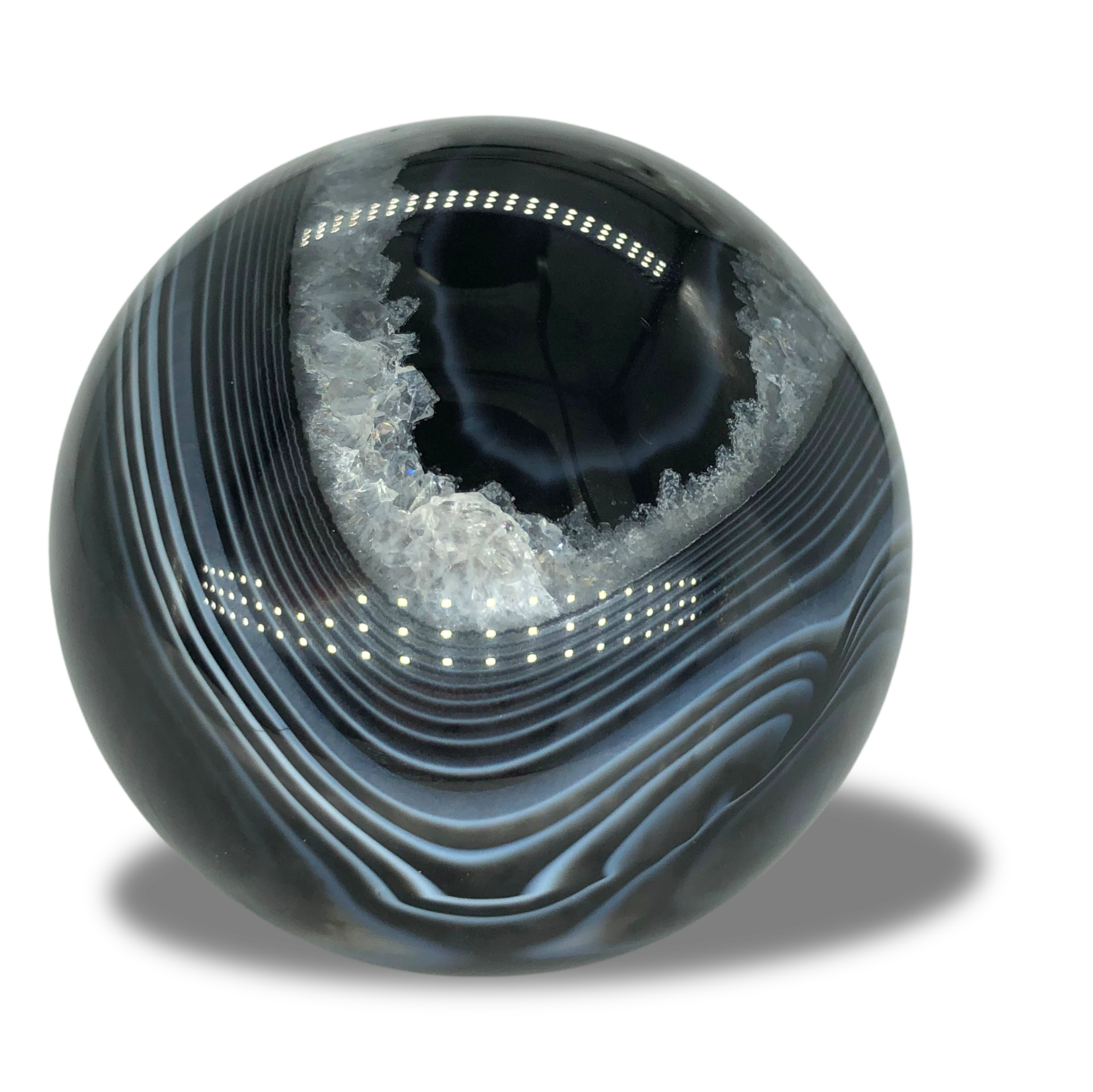 - Polished into a spherical shape, the bands wrap around smoothly, offering a 360° view of natural internal patterns—a tangible way to explore mineral layering.