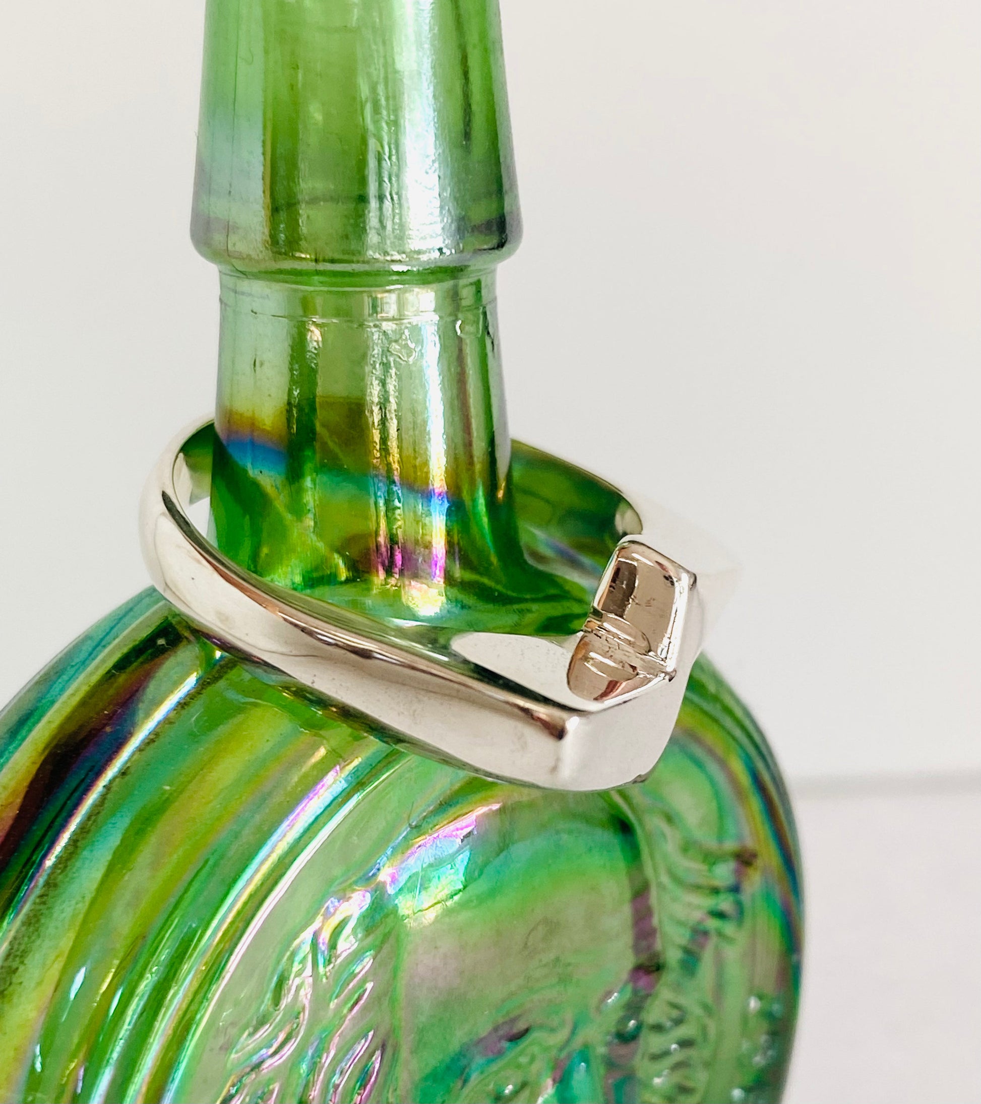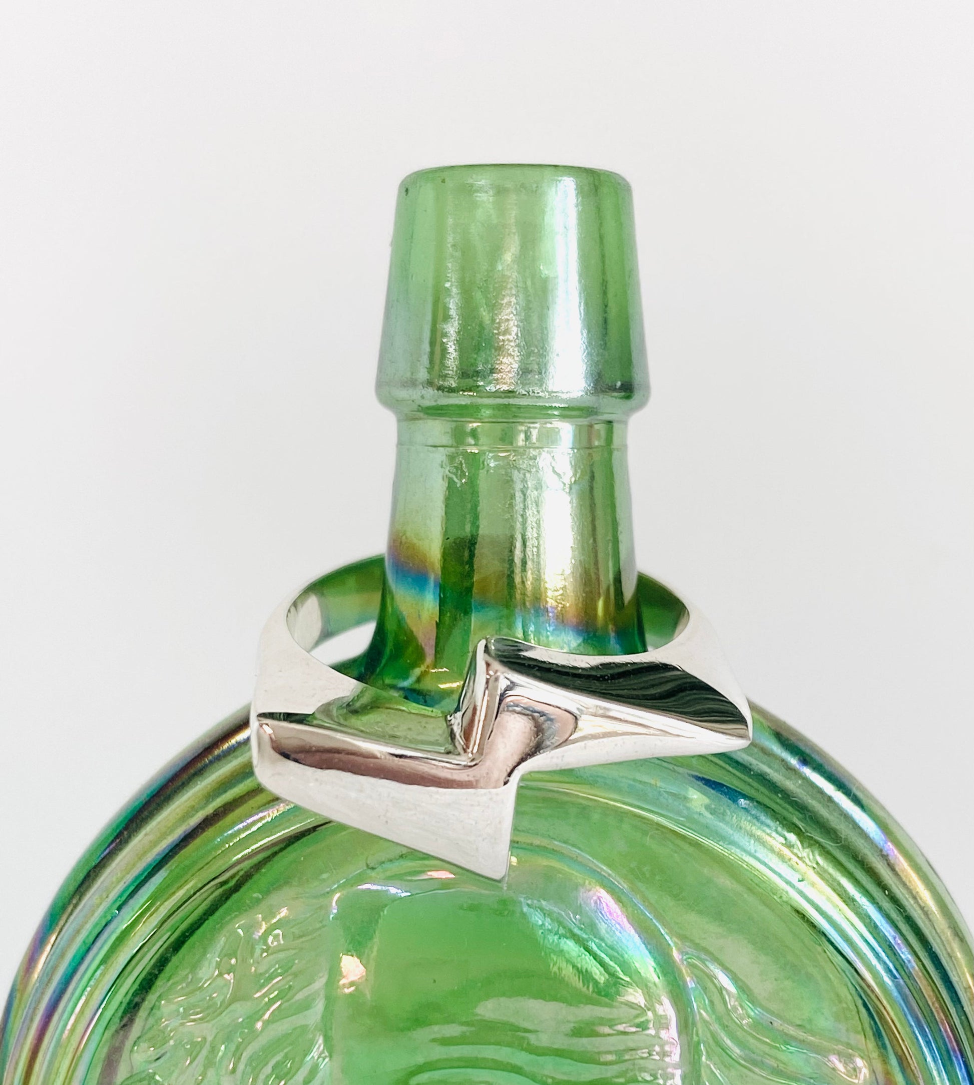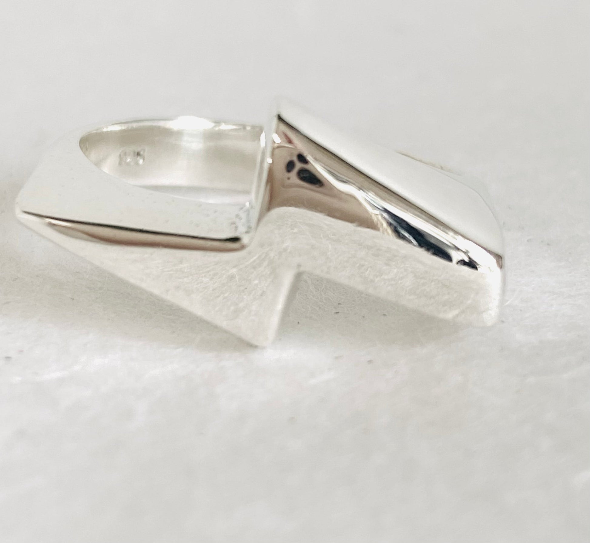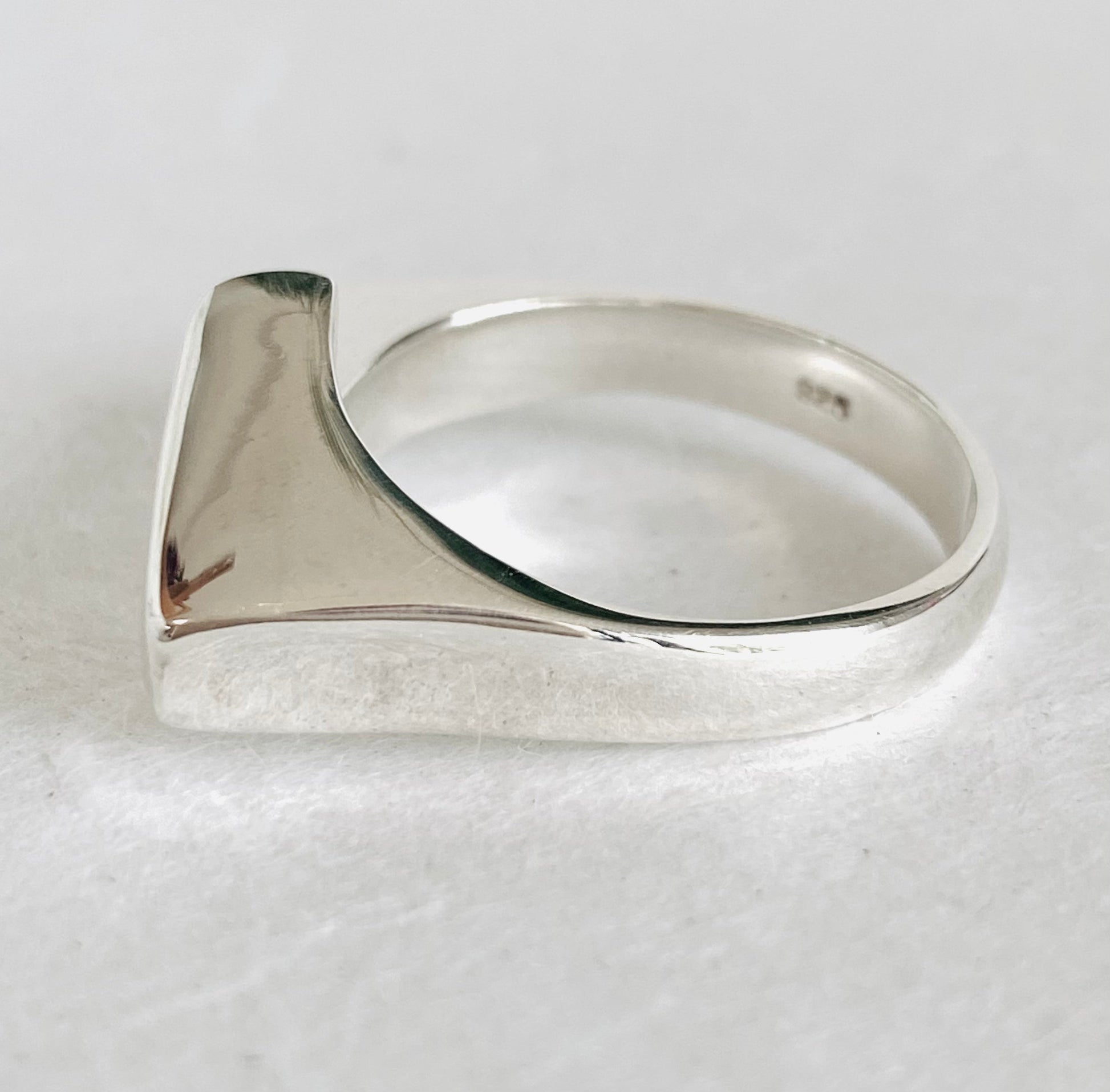 sleek lightning bolt design. It’s made by a process called wax carving where I carve a wax ring and it gets cast in sterling. A super fun process I love working in.