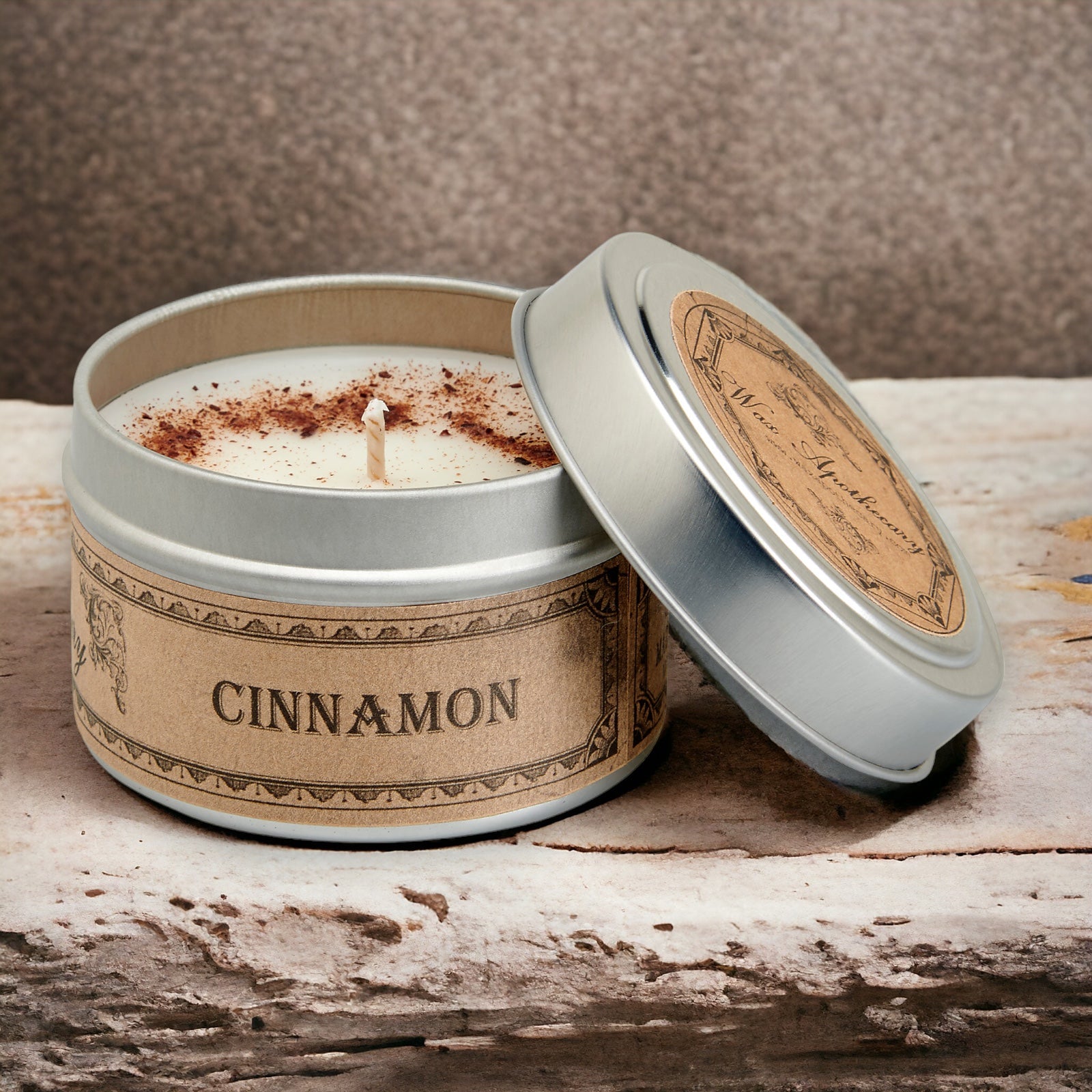 4 oz botanical travel candle with a rich cinnamon fragrance that feels comforting, energizing, and warmly inviting.