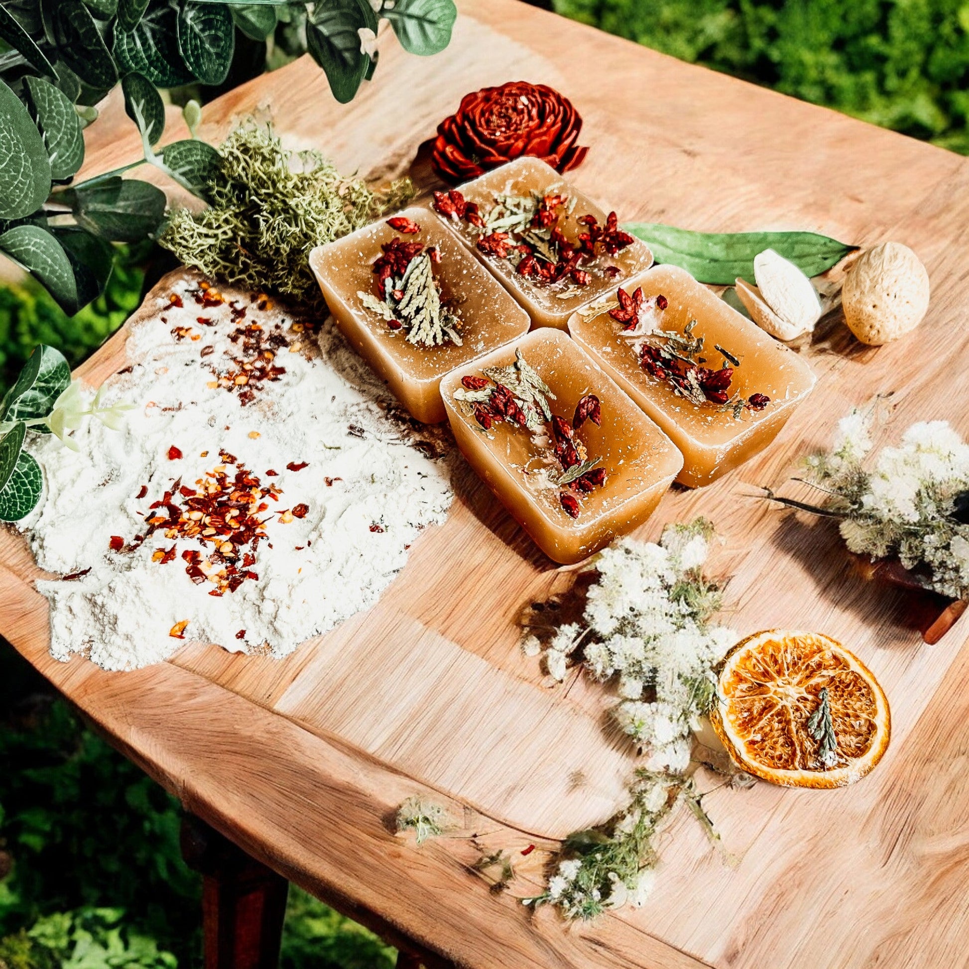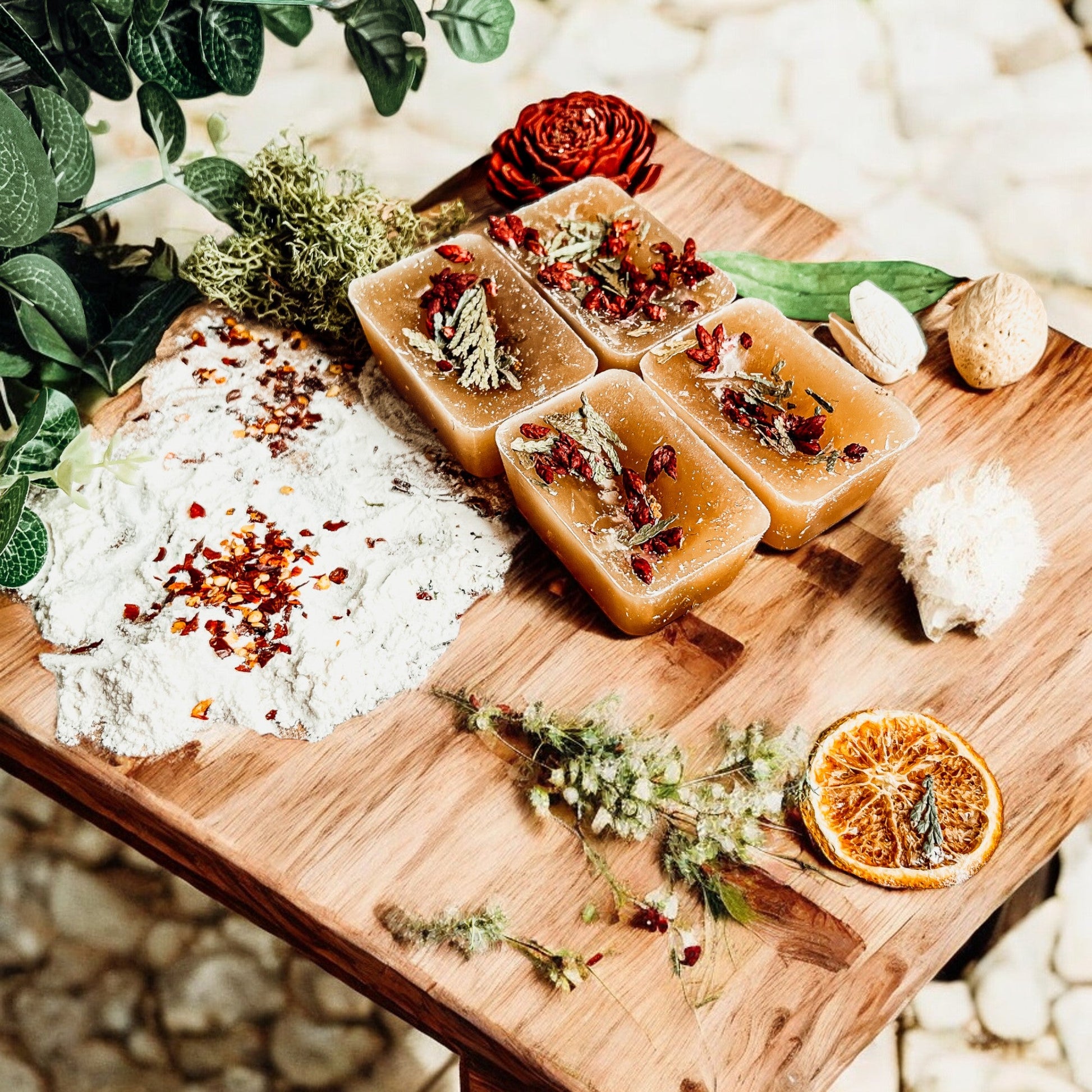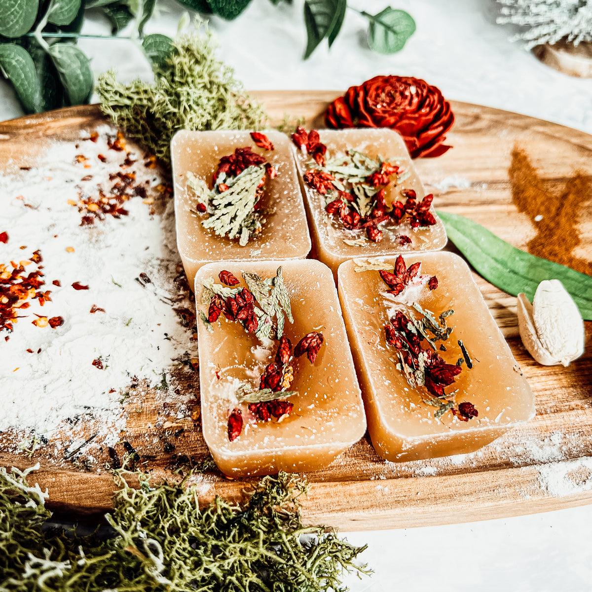 - With our natural line of melts, you can actually see the hand-ground spices that make up our wonderful scents. And while our wax melts may look a little different than traditional melts, the colors come from the spices themselves, not from synthetic dyes. Each melt is coated with spices that are ground by hand to ensure the freshest ingredients into each product!