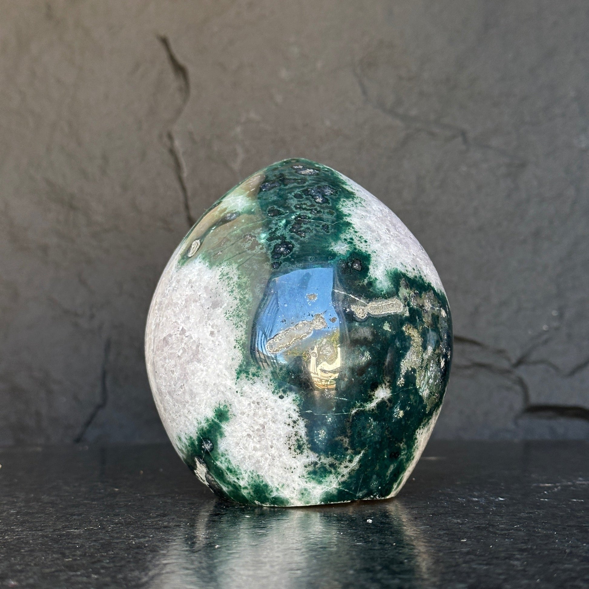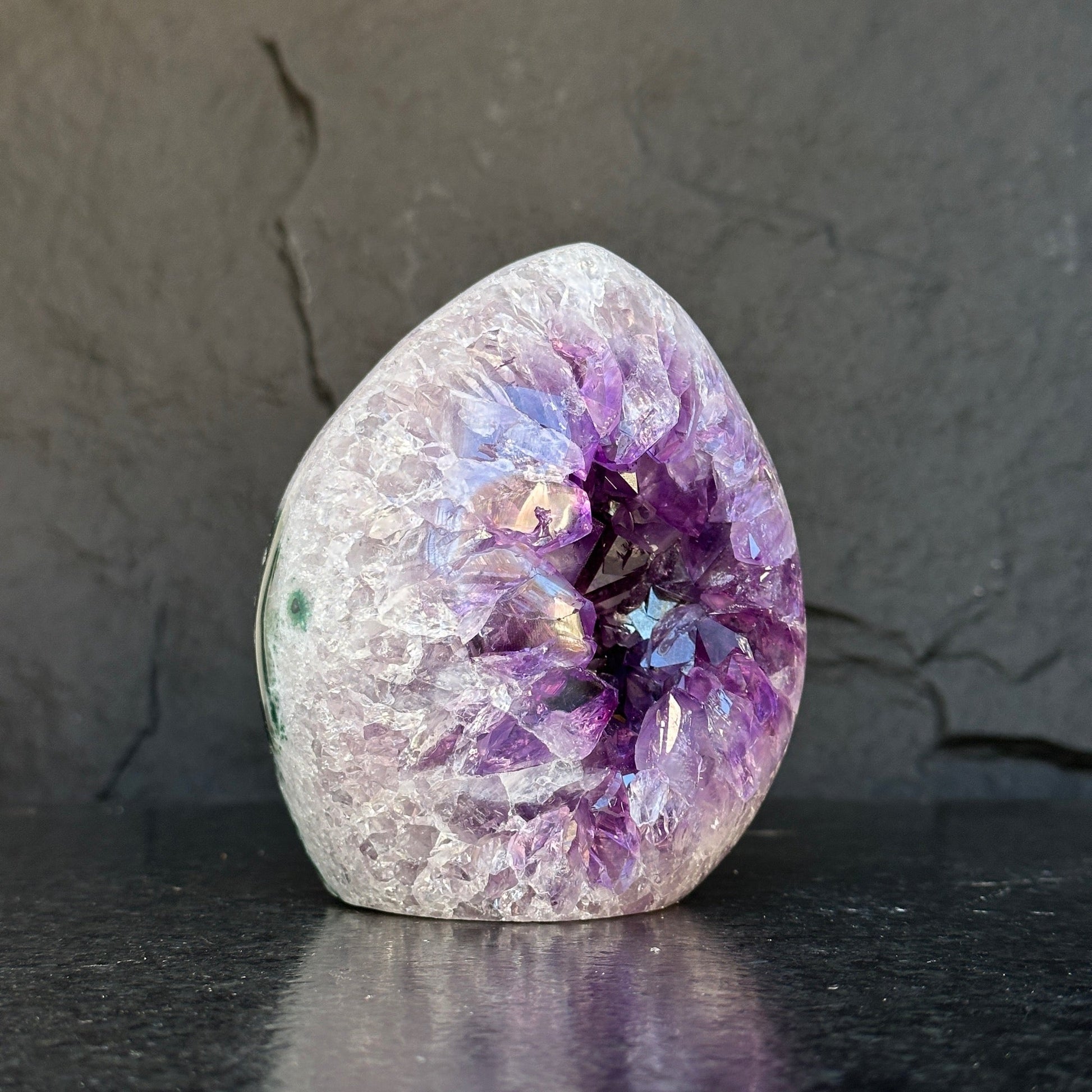 This amethyst and agate crystal geode is perfect for displaying in a reception table or desk.