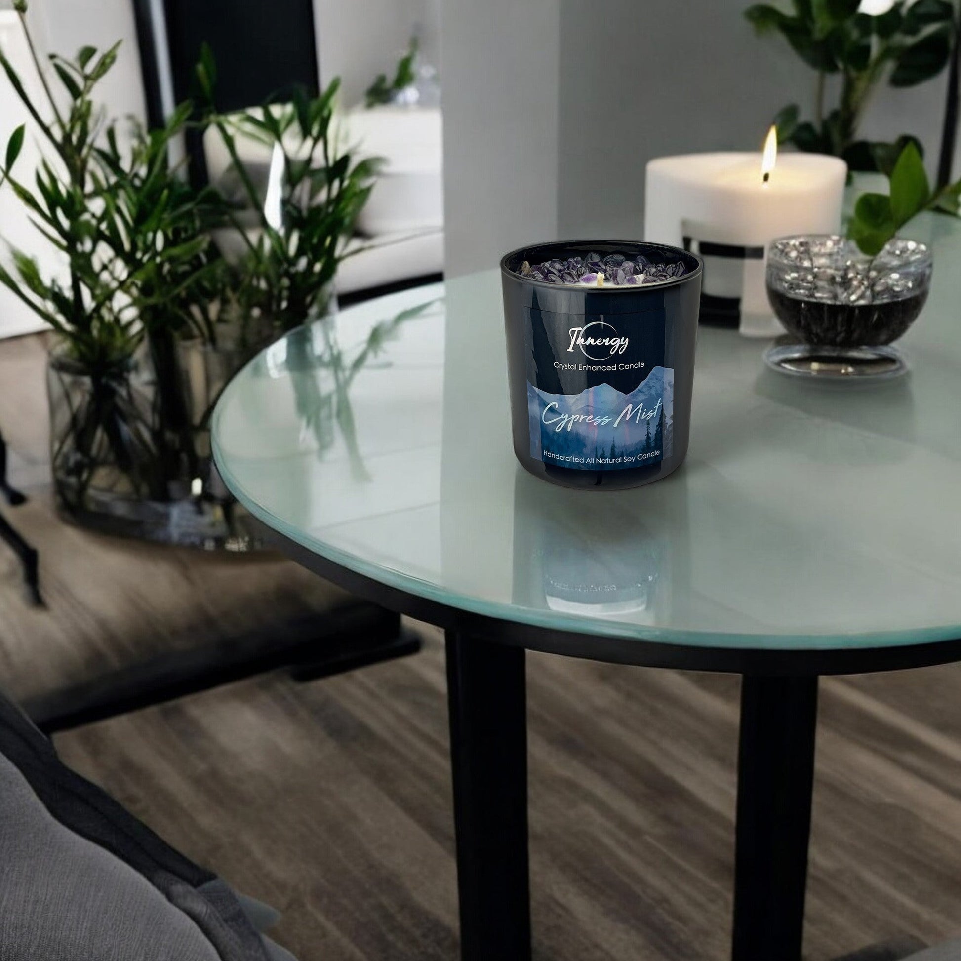 Cypress Mist Crystal Candle with Amethyst | Coconut-Soy Wax Candle, 9oz