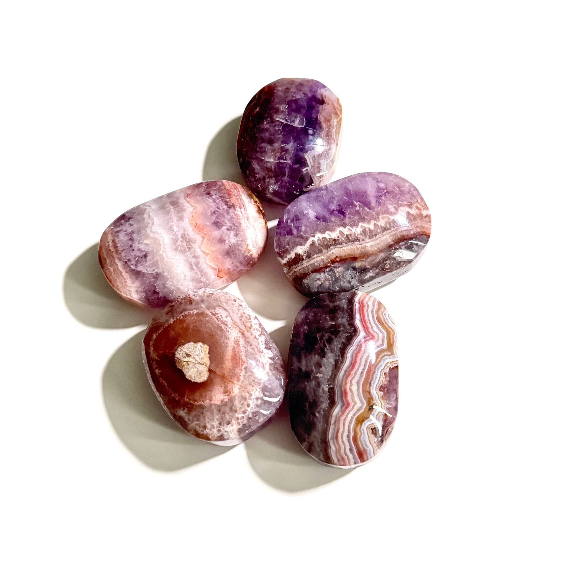 This beautiful stone is a mix of quartz, amethyst and agate bringing together the energies connected to the crown, third eye and root chakras for an all over healing and connecting vibe.