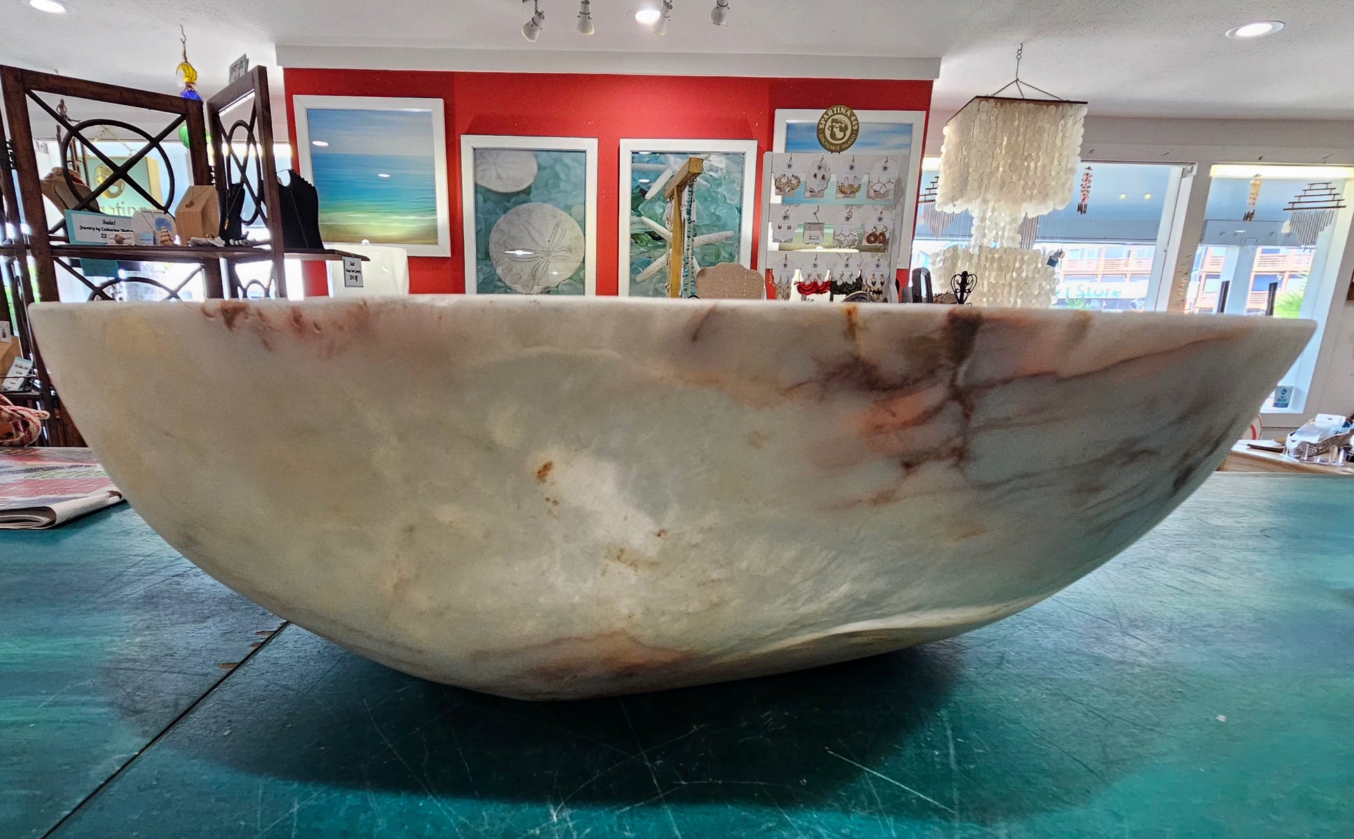 Extra-Large Hand-Carved Onyx Bowl – Natural Stone Centerpiece – 17.25"