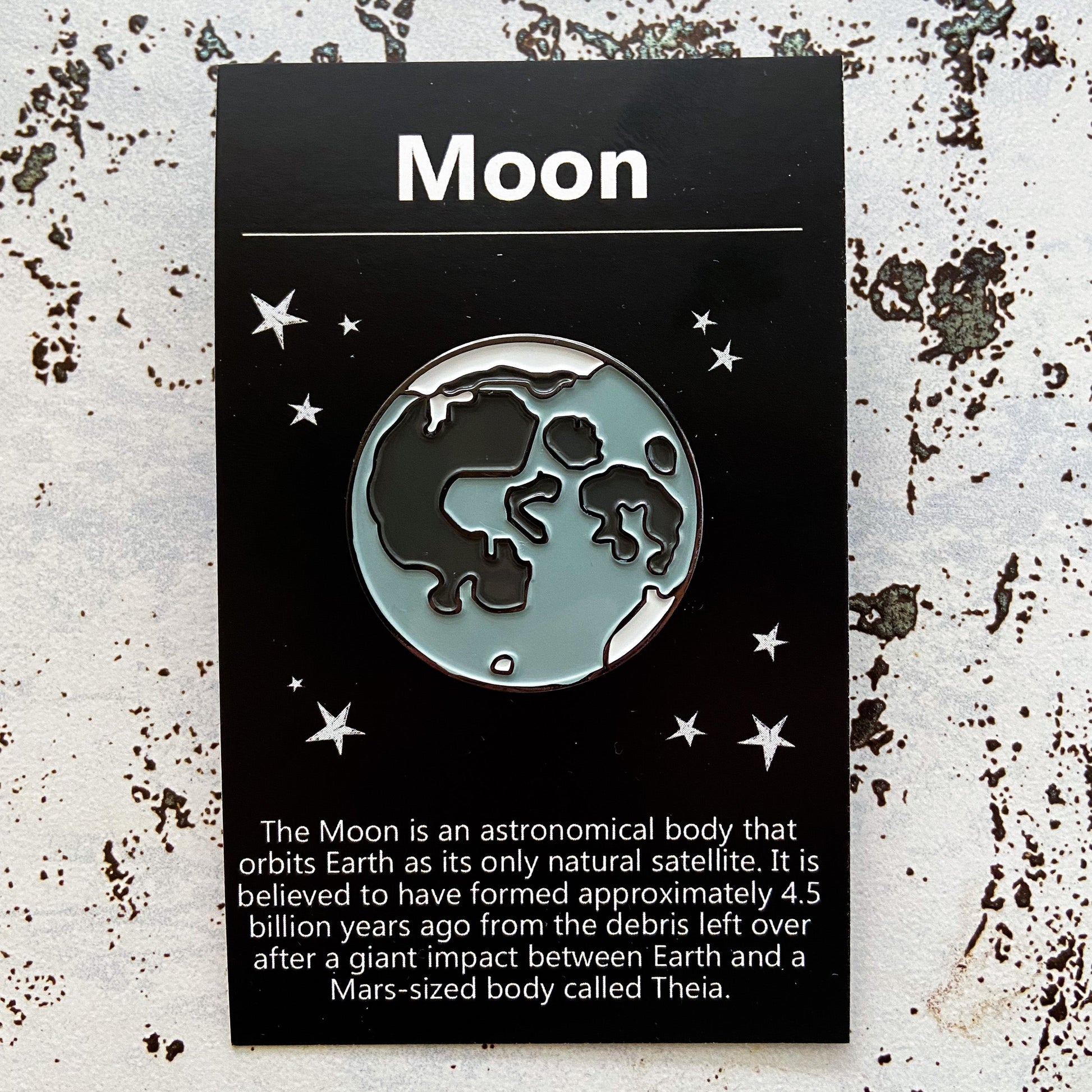 The perfect stocking stuffer gift and what your jean jacket or backpack have been missing! A fun cosmic enamel pin featuring our favorite satellite, the full Moon. The design of this pin is an original illustration by Lauren Beacham.