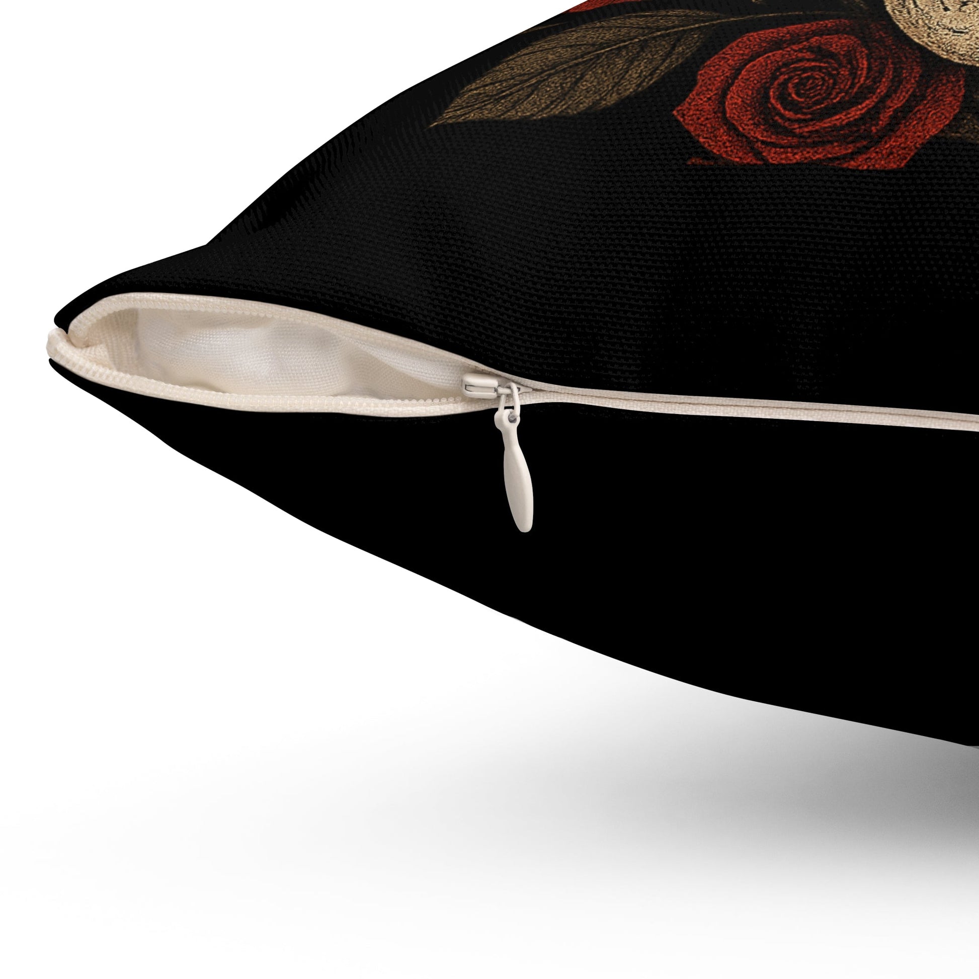 Enhance your home decor with this striking and unique Spun Polyester Square Pillow. Featuring a bold design of a skull surrounded by vibrant roses, this pillow adds character and style to any living space. Its durable spun polyester material ensures it retains its shape and resists wrinkling, making it perfect for everyday use. This pillow is ideal for those who appreciate a mix of edgy and elegant decor. Perfect for the Halloween season, it also makes a great gift for housewarmings or celebrations such as Día de los Muertos. Whether used in a cozy reading nook or as a statement piece on your sofa, it helps create a warm and inviting atmosphere while showcasing your personal style.