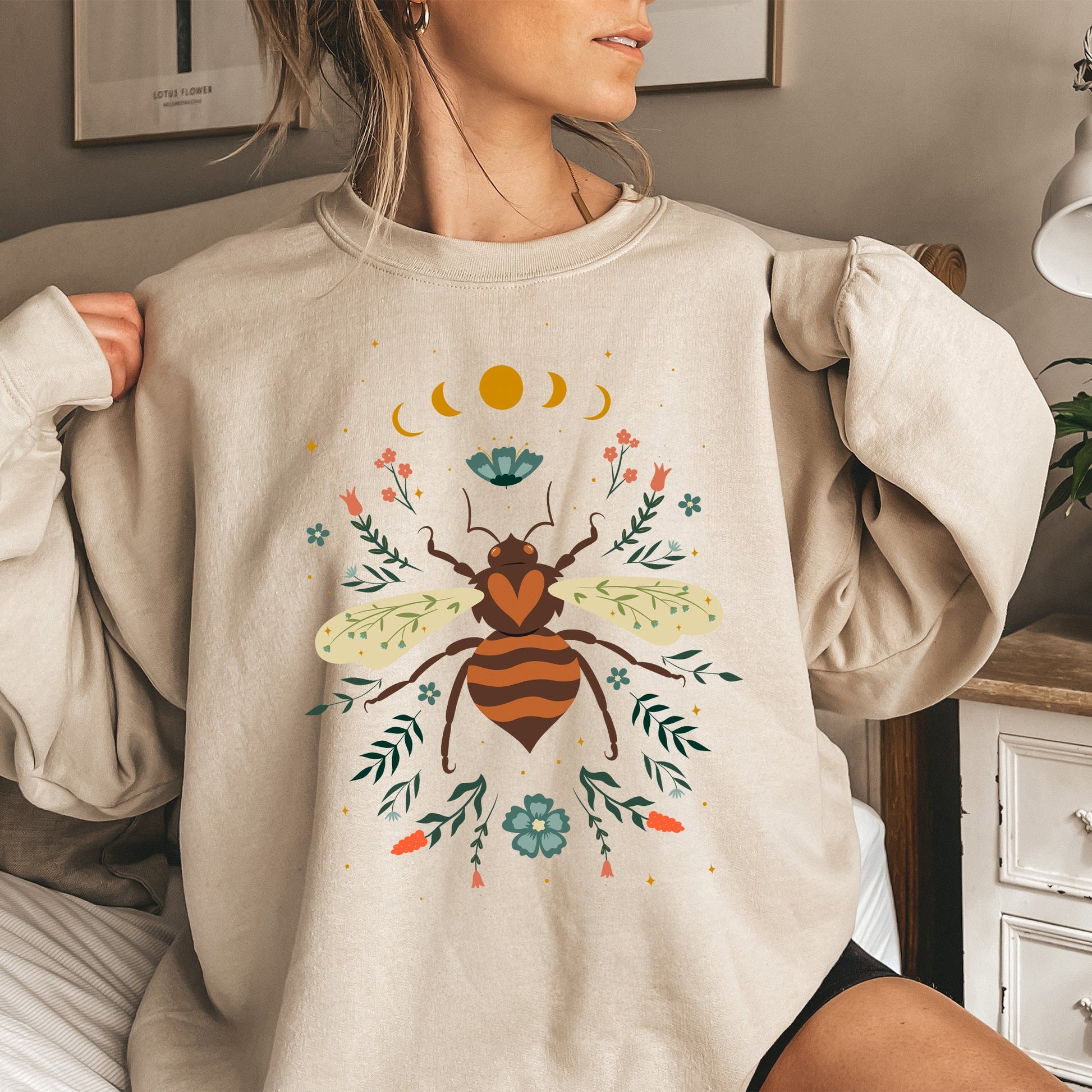 Introducing the Honey Bee, Forest Moon, Botanical Design Sweatshirt, where comfort intertwines with nature-inspired artistry. Crafted from a soft cotton and polyester blend, this sweatshirt offers a cozy, brushed fleece interior that wraps you in warmth, making it the perfect choice for any season. Whether you’re lounging at home or out on an adventure, this unisex pullover provides the ideal balance of comfort and style.